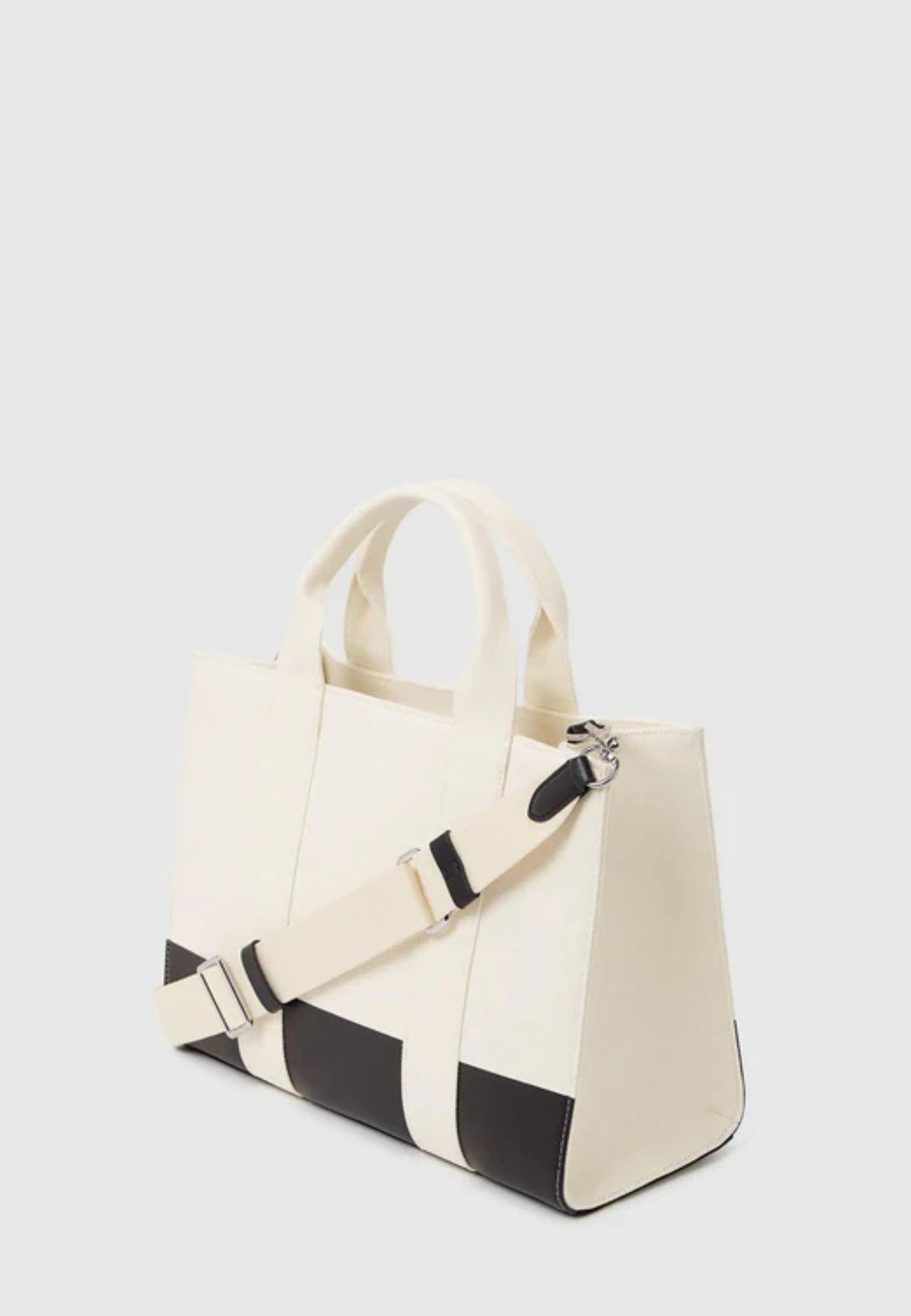 Realizzata in tessuto intrecciato in misto cotone riciclato, presenta chiusura superiore con zip per garantire sicurezza e protezione degli effetti personali. I due manici superiori consentono il trasporto a mano, mentre la cinghia rimovibile offre unalternativa a spalla o crossbody.