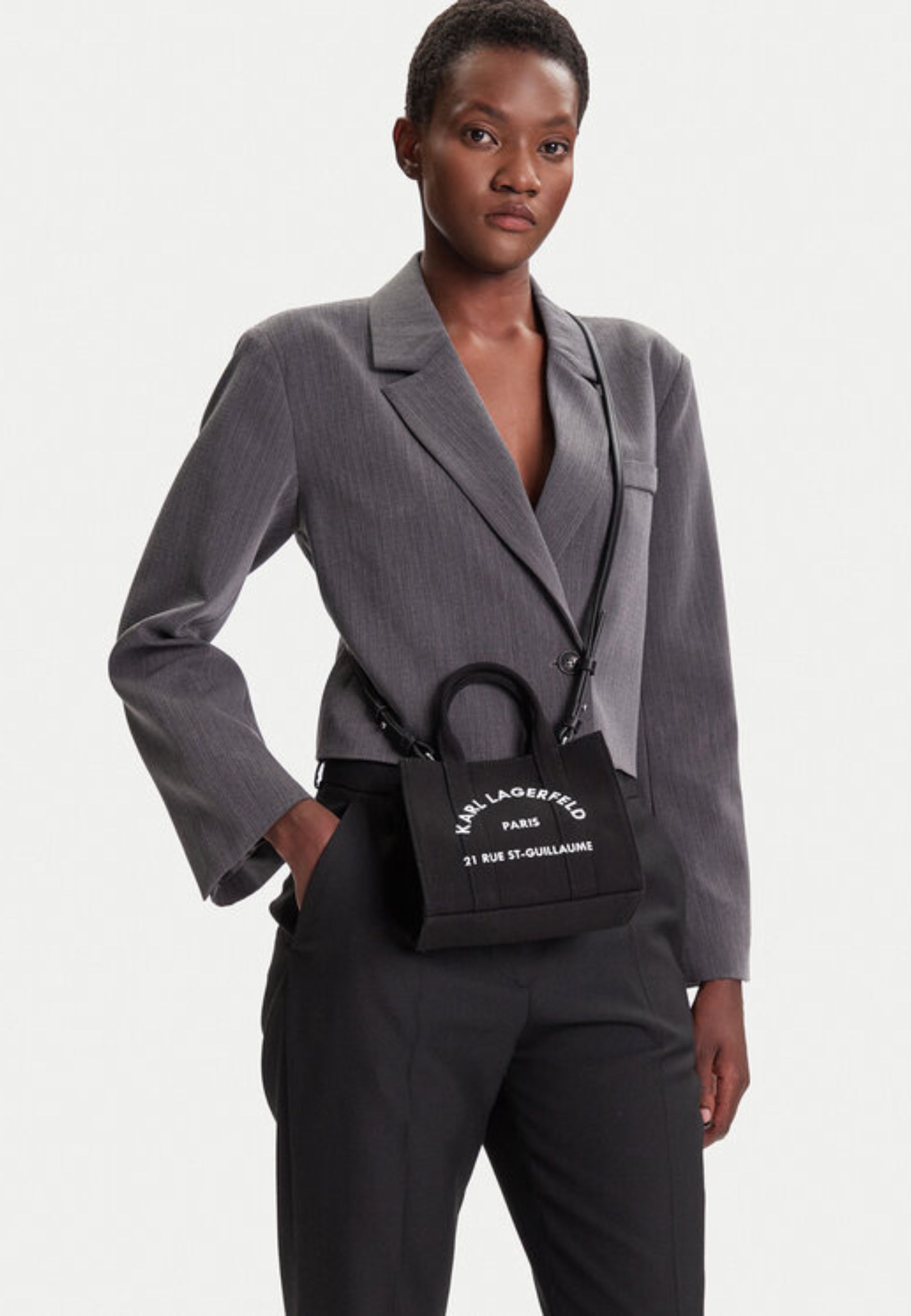 Dotata di chiusura magnetica, presenta manici corti per il trasporto a mano e cinturino lungo regolabile e removibile che consente lutilizzo a spalla o crossbody. Il motivo stampato con logo valorizza il design essenziale del brand.