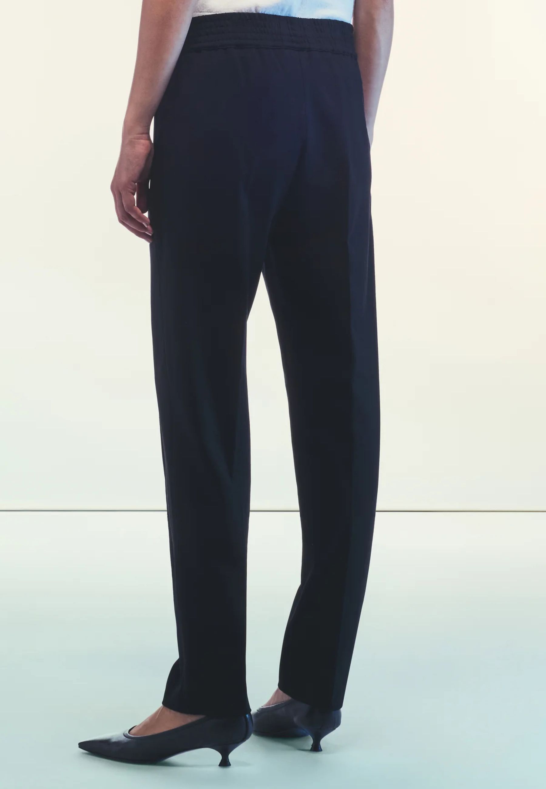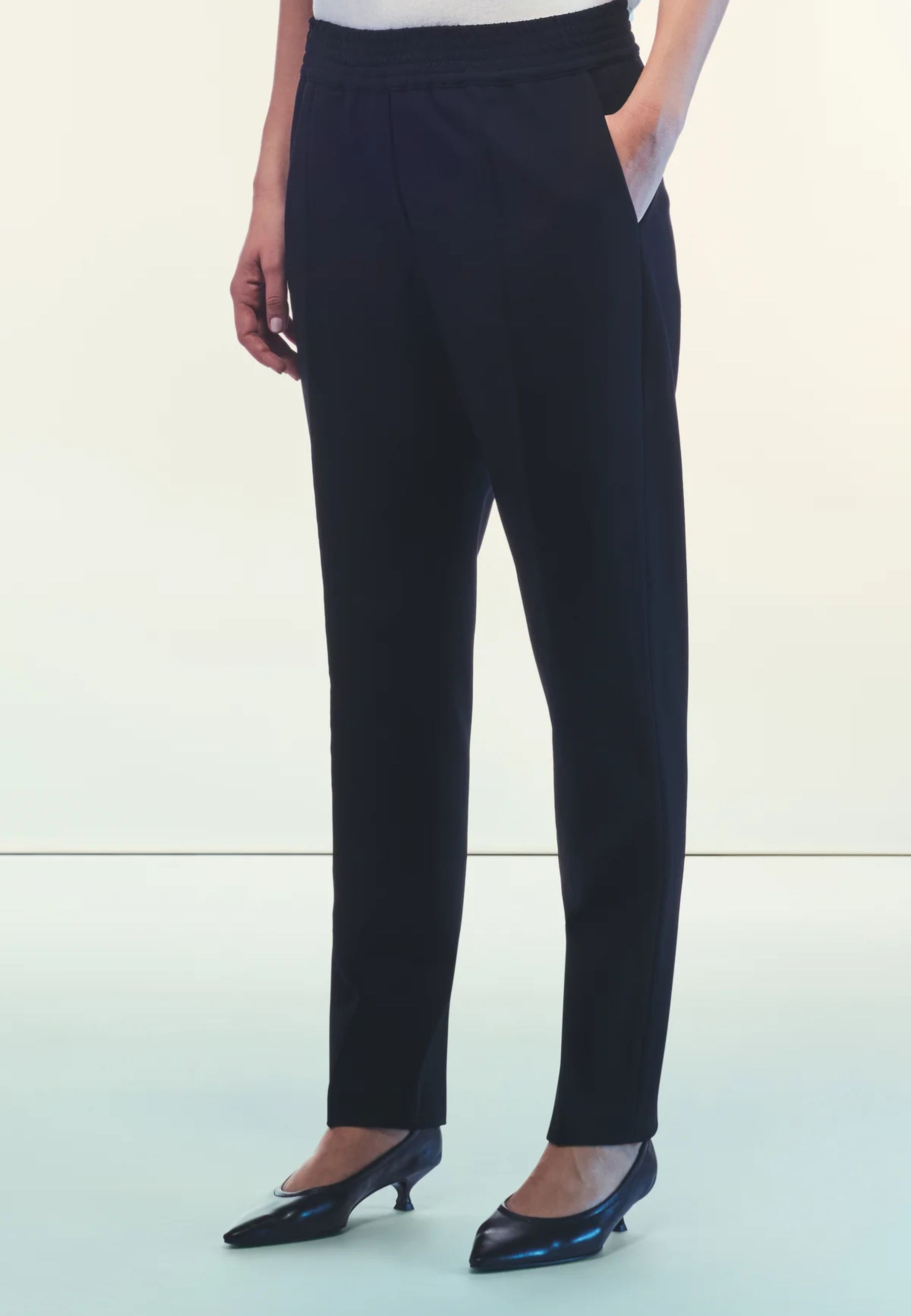 PANTALONE JOGGER IN PUNTO MILANO CON VITA ELASTICIZZATA. LINEA DRITTA CHE SI RESTRINGE ALLA CAVIGLIA. TASCHE LATERALI INSERITE