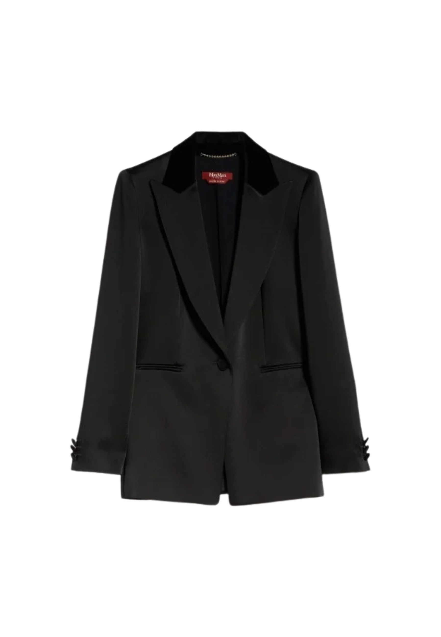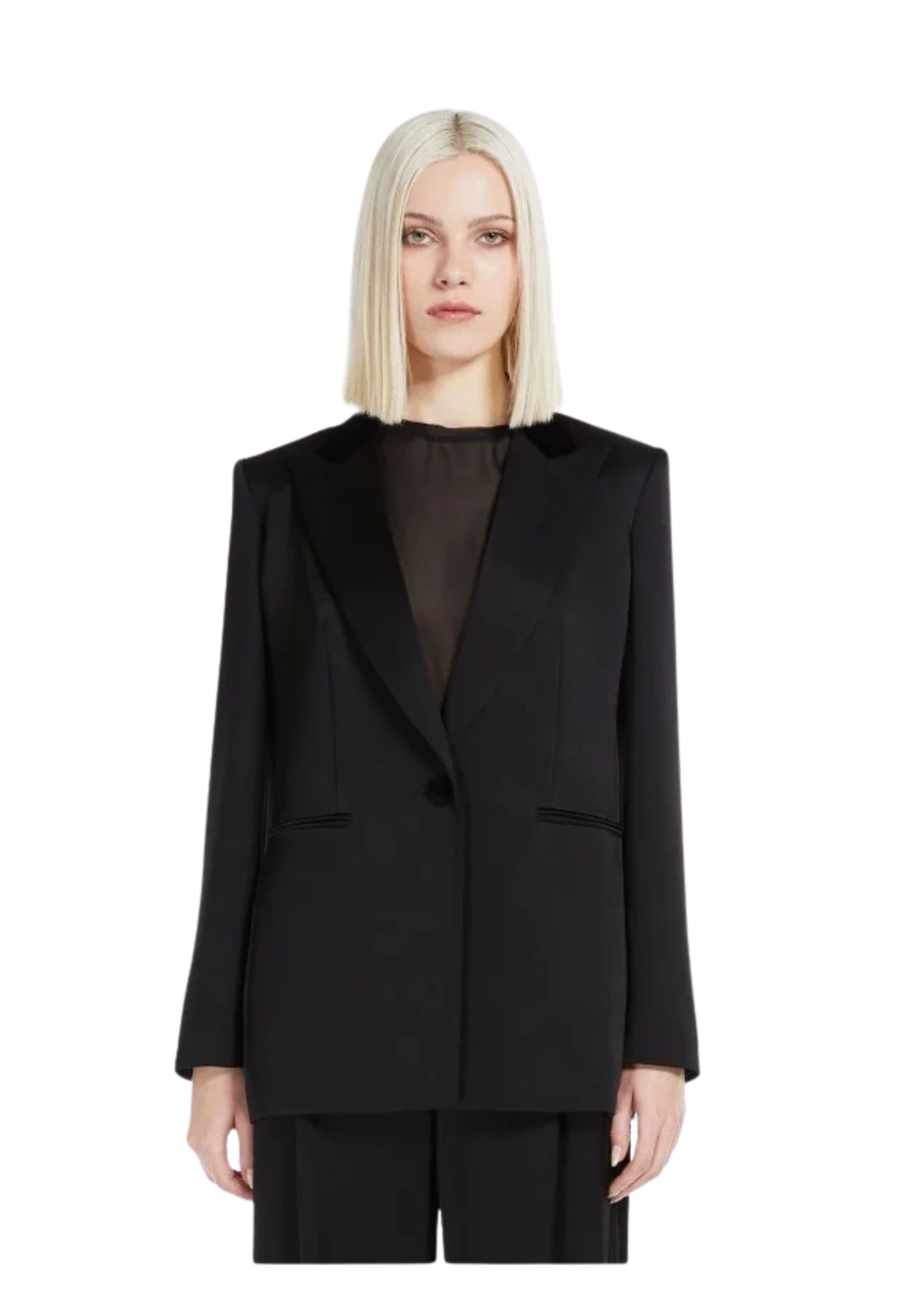 La giacca Anselmo firmata Max Mara rappresenta una sintesi impeccabile di eleganza sartoriale e stile formale contemporaneo. Realizzata in prezioso envers satin, si distingue per la linea pulita e strutturata, ispirata al classico smoking femminile.