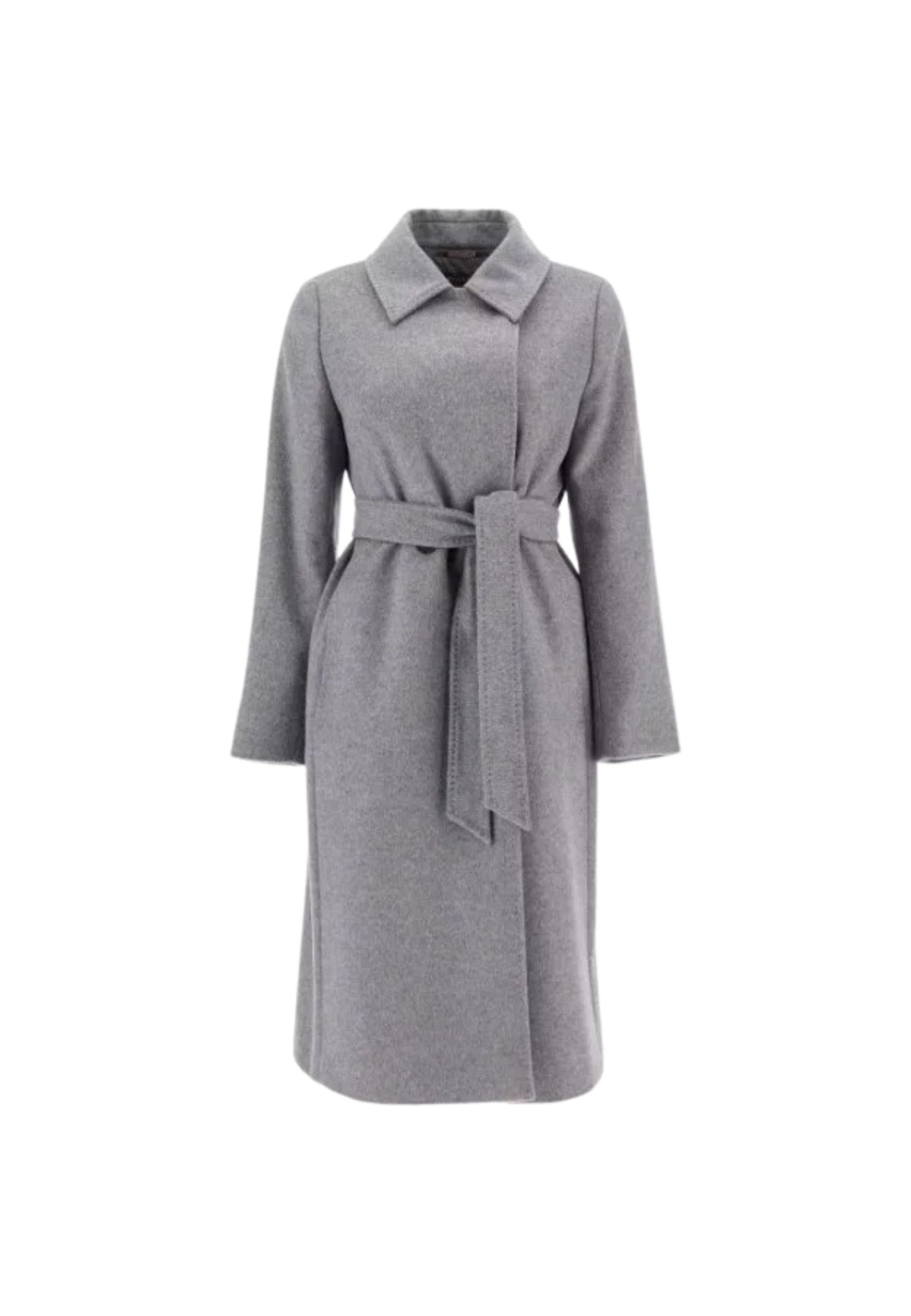 Elegante cappotto Max Mara modello Bcollag, realizzato in pura lana vergine 100%, caratterizzato da una linea raffinata e femminile che unisce minimalismo e sartorialità tipica della maison.