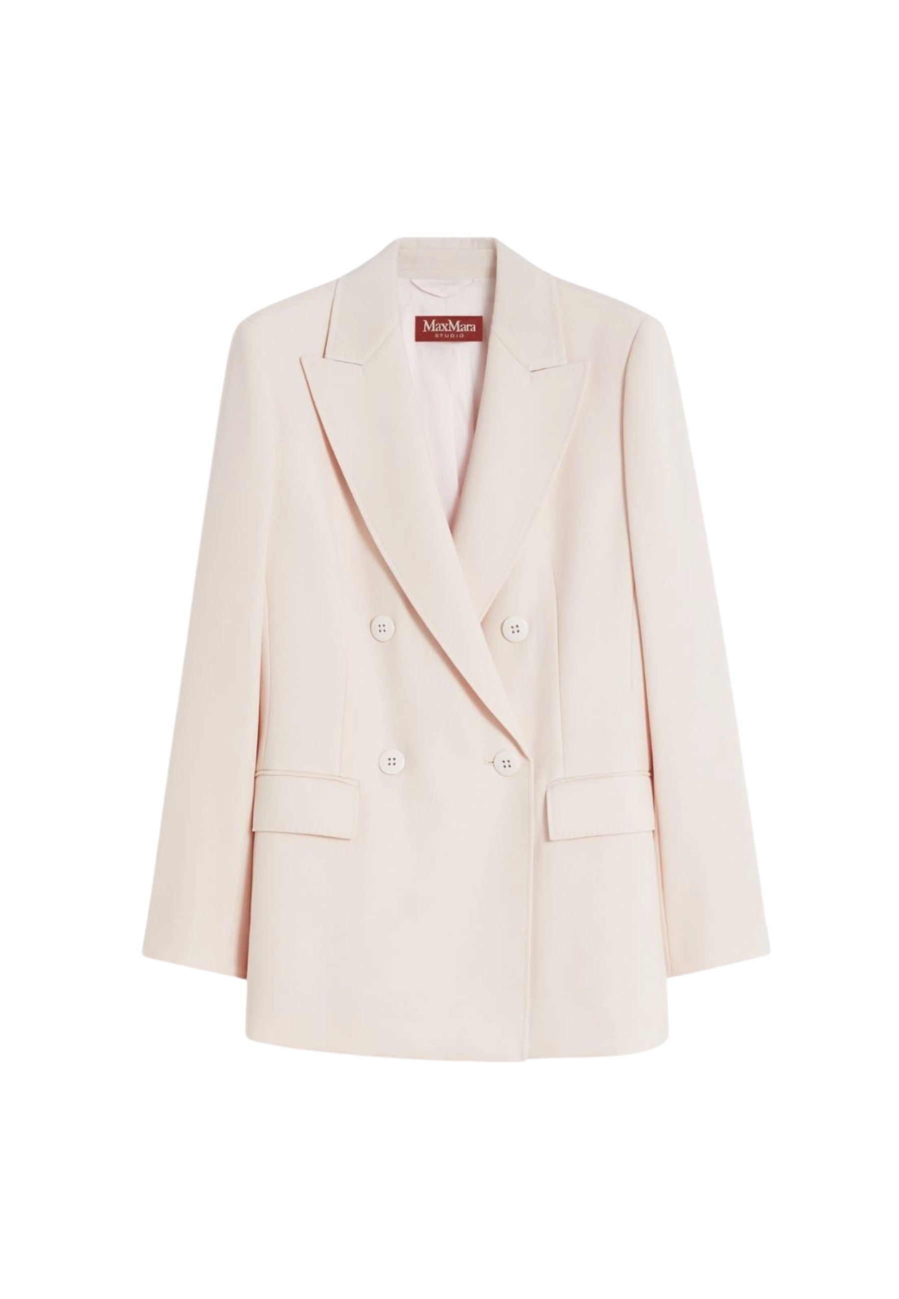Blazer doppiopetto firmato Max Mara, caratterizzato da unelegante ispirazione sartoriale e da una silhouette femminile e strutturata. Realizzato in crêpe satin di pura lana vergine, il capo unisce raffinatezza e comfort, offrendo una vestibilità impeccabile e una texture morbida al tatto.