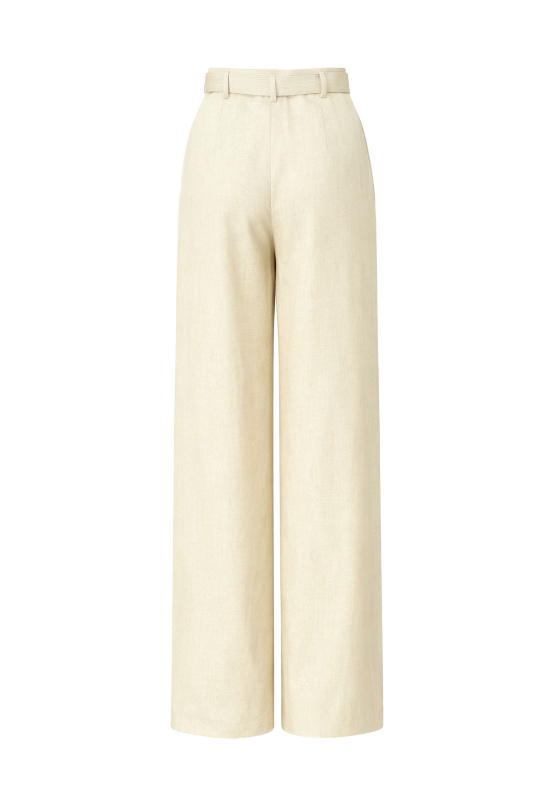 Il design è completato dal listino alto in vita con passanti e cintura abbinata, dalla chiusura con zip coperta da patta e gancetti e dalle tasche alla francese sui fianchi con puntino sartoriale. Sul retro, le pinces cucite in vita assicurano una vestibilità armoniosa e raffinata.