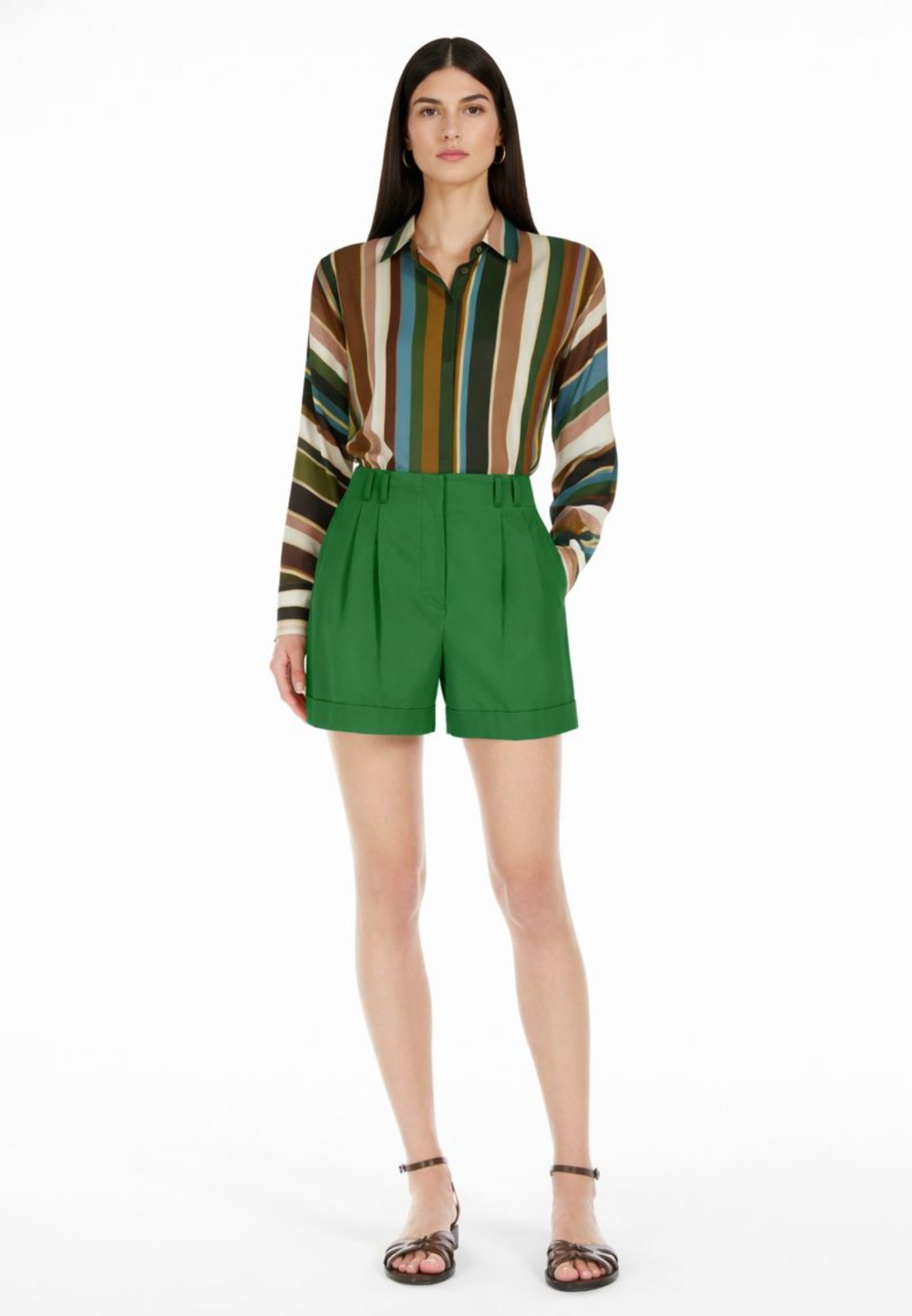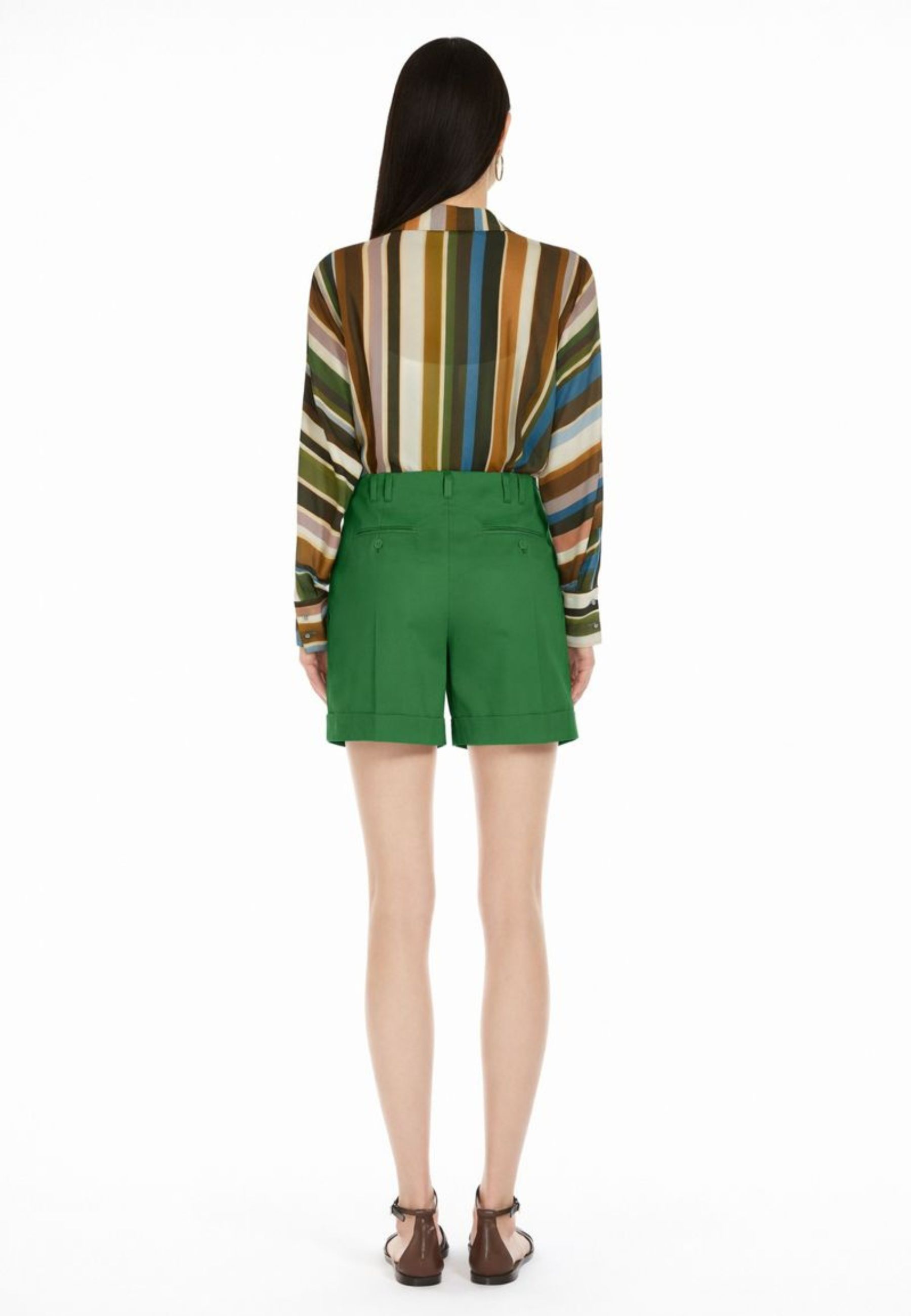 Short Max Mara Studio modello Bergen, realizzato in gabardina di cotone stretch, pensato per offrire una vestibilità elegante e confortevole. Il capo è caratterizzato da piega stirata e doppia pinces sul davanti, che definiscono la silhouette, e da risvolto al fondo per un tocco sartoriale contemporaneo.