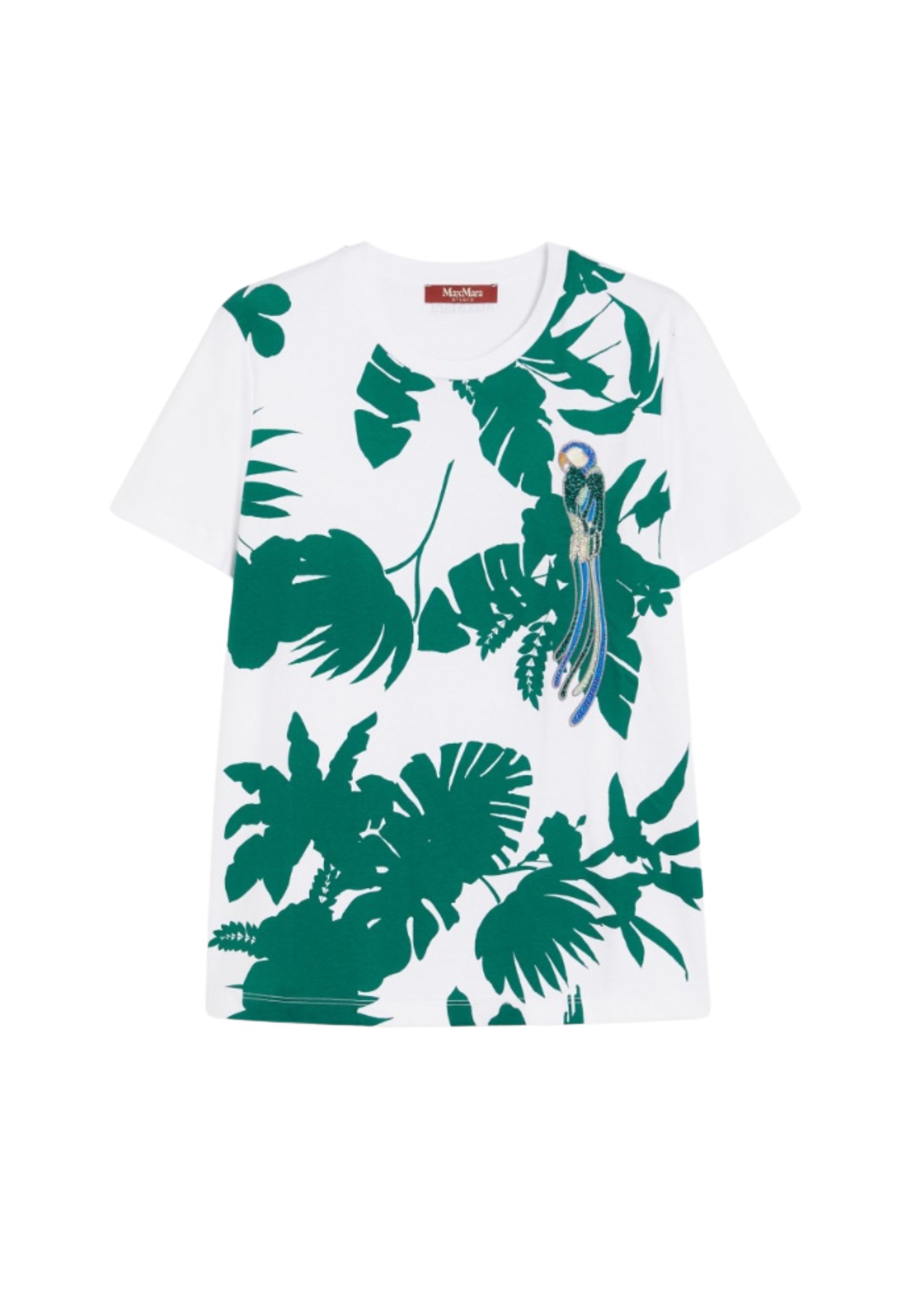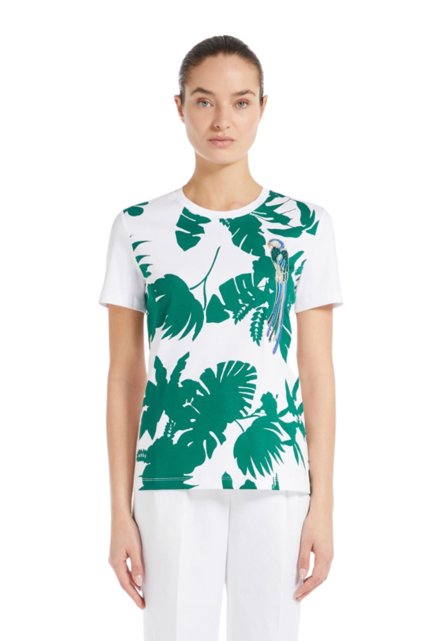 T-shirt girocollo realizzata in morbido jersey di cotone. Modello a maniche corte, personalizzato con motivo stampato sul davanti e dettagli ricamati. Rifinita con logo stampato sul retro del collo.