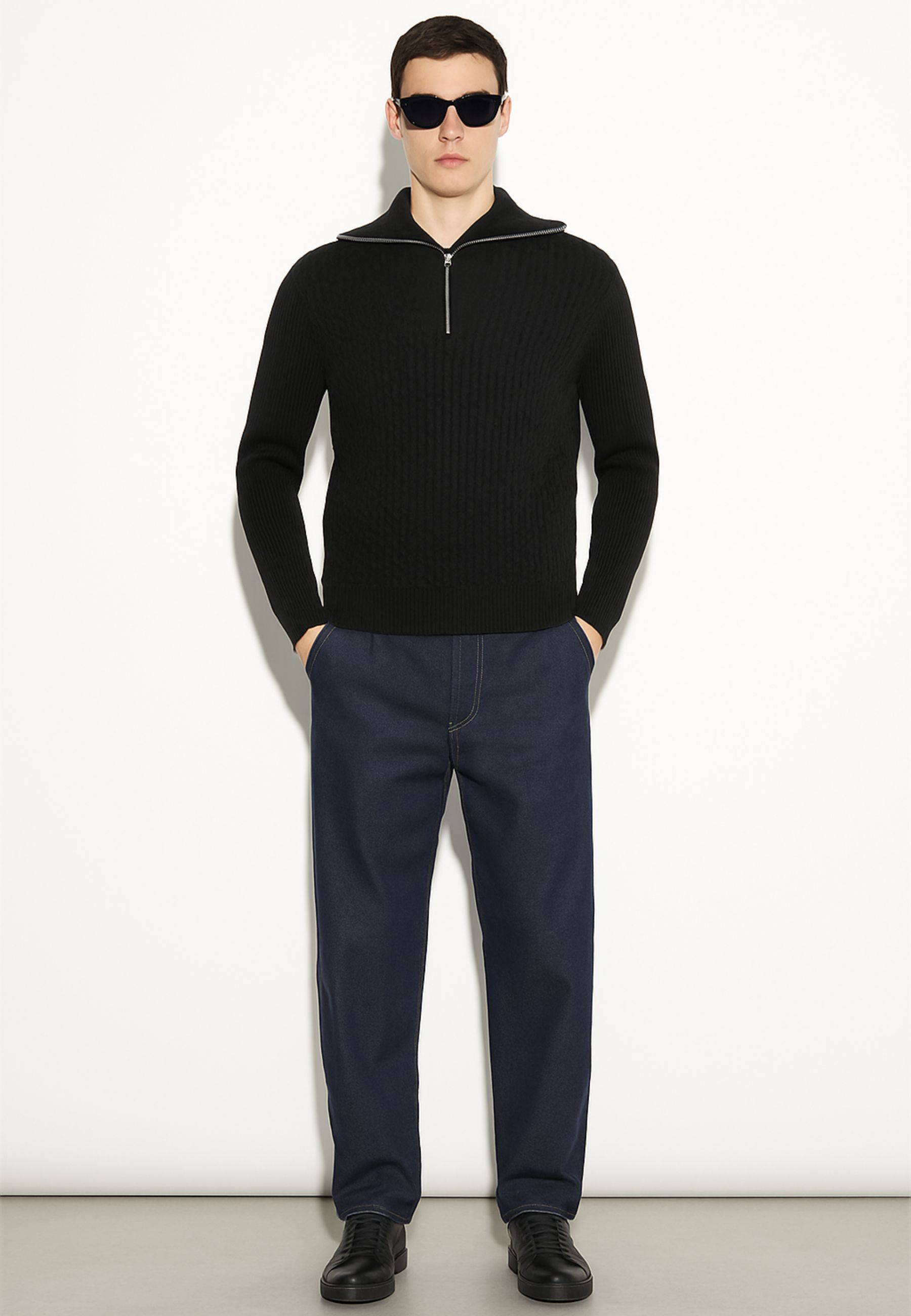 Maglia a collo alto con chiusura a zip fissa, firmata Paolo Pecora. Realizzata in lana 100%, presenta una lavorazione finezza 7 che conferisce struttura e calore, mantenendo al tempo stesso un aspetto elegante e contemporaneo.