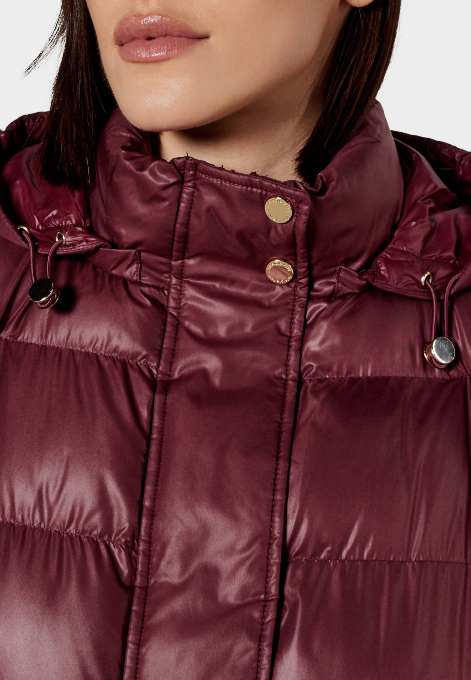 - Collo alto con cappuccio integrato e regolabile con coulisse