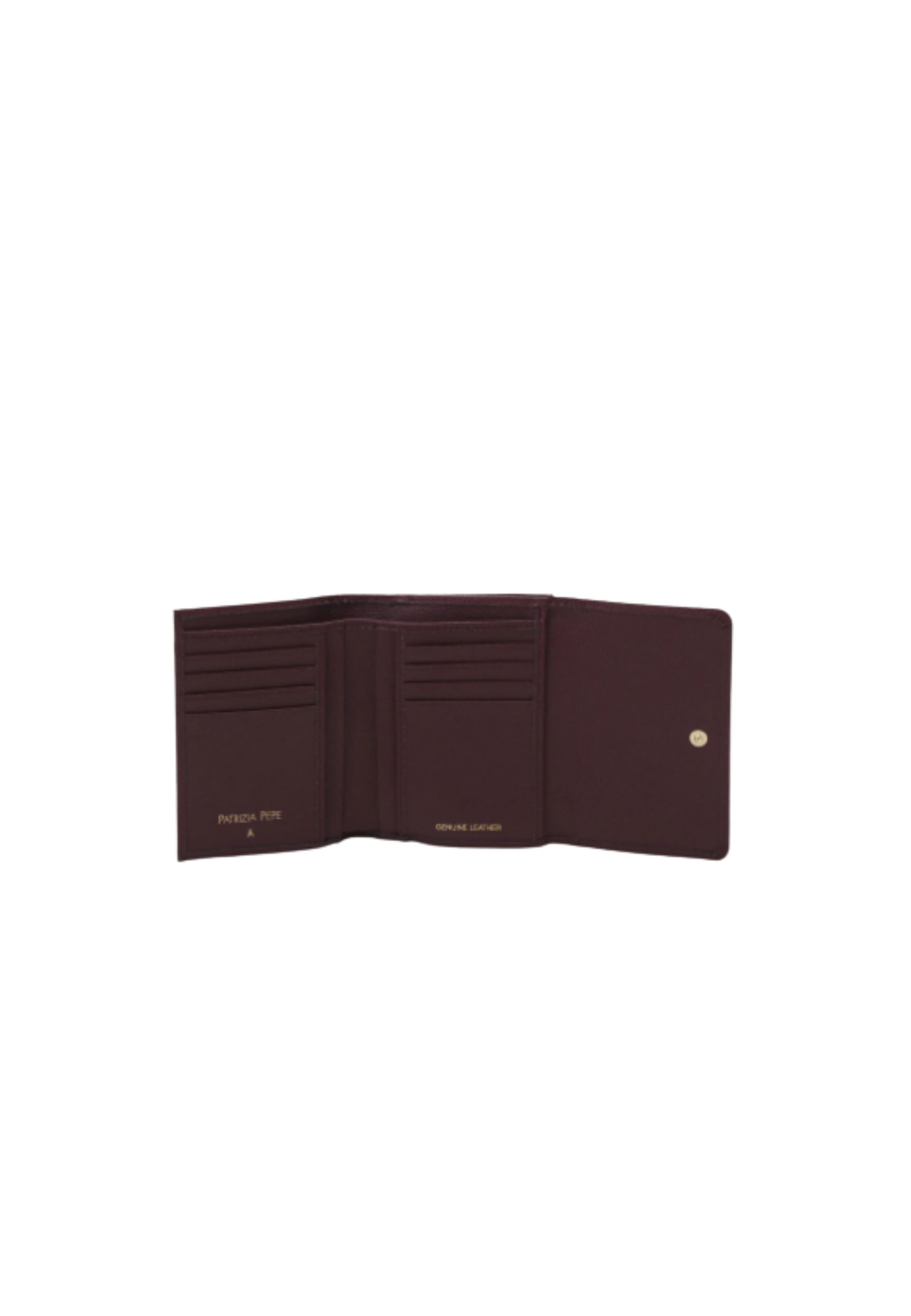 Il portafoglio medio Patrizia Pepe unisce funzionalità e raffinatezza in un accessorio compatto e ben organizzato. Realizzato in pelle di alta qualità, si distingue per la tonalità Purple Red, intensa ed elegante, valorizzata dal logo metallico con iconica Fly sul fronte.