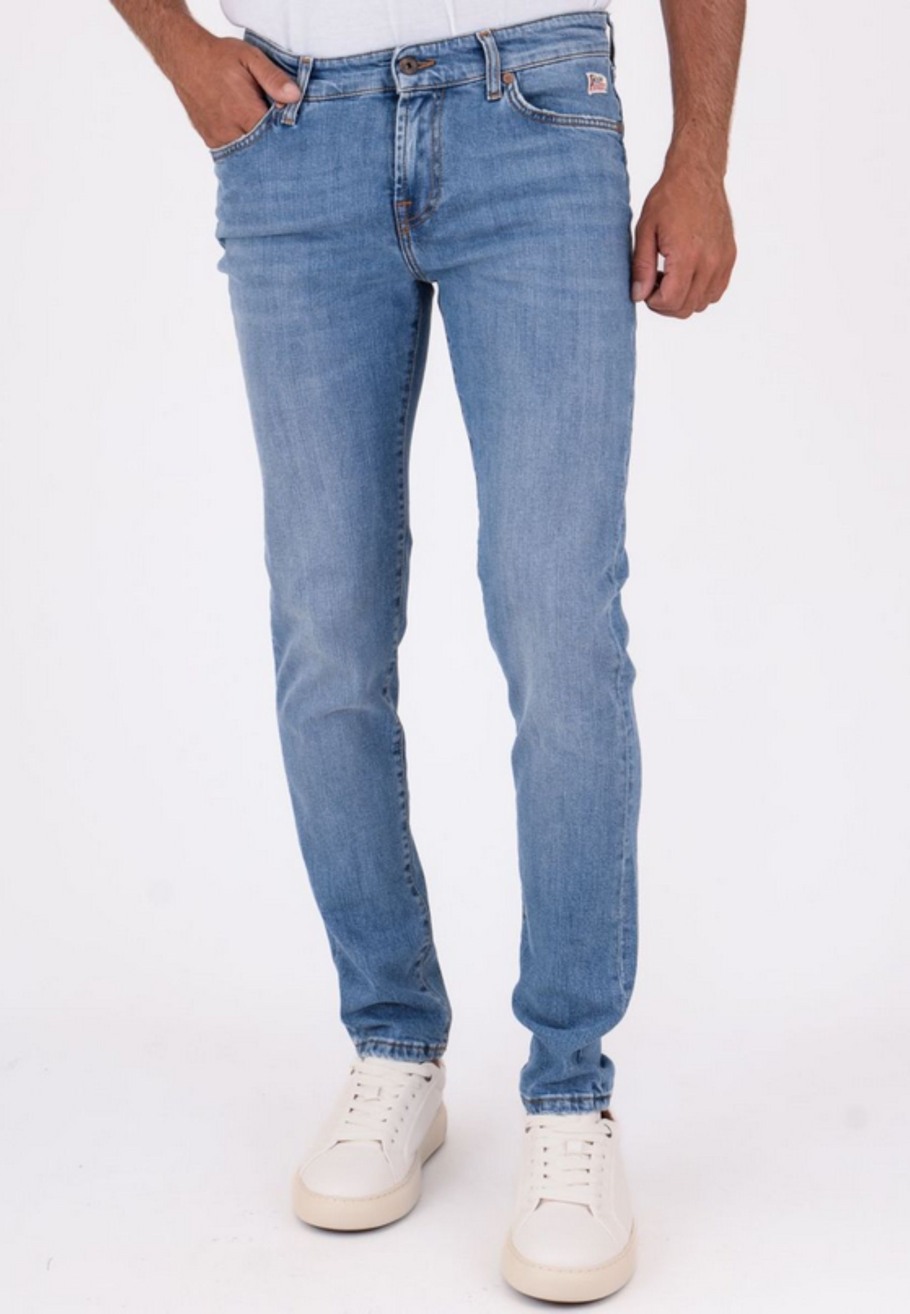 Realizzato in denim stretch con una composizione tecnica che garantisce elasticità controllata e stabilità nel tempo, il capo assicura una vestibilità aderente ma confortevole.