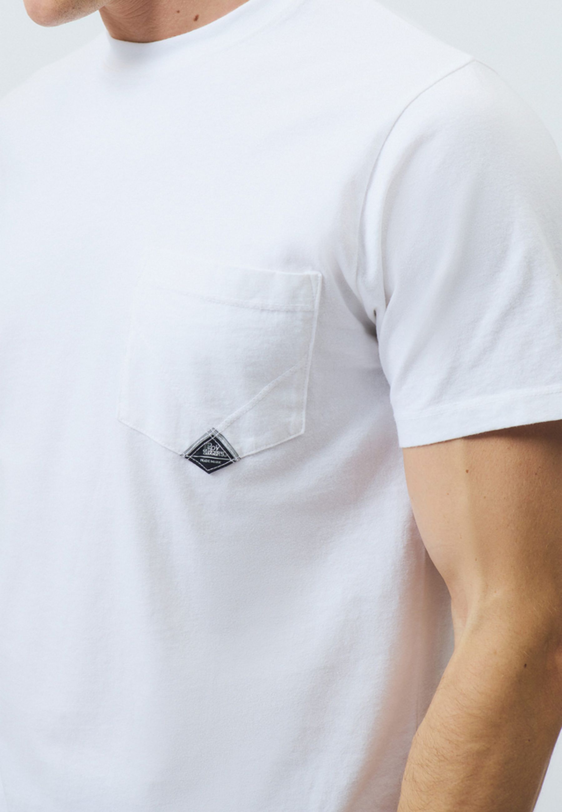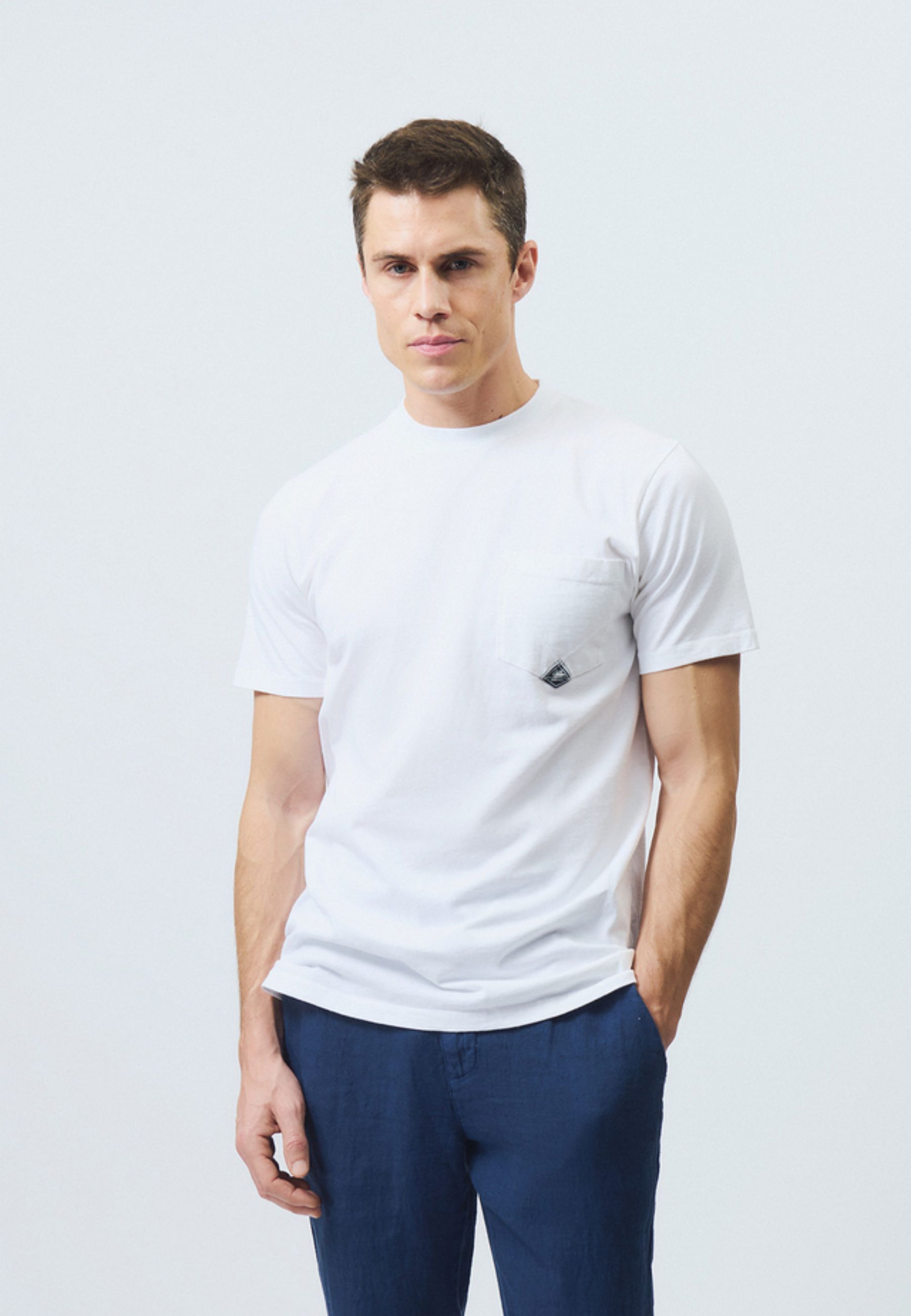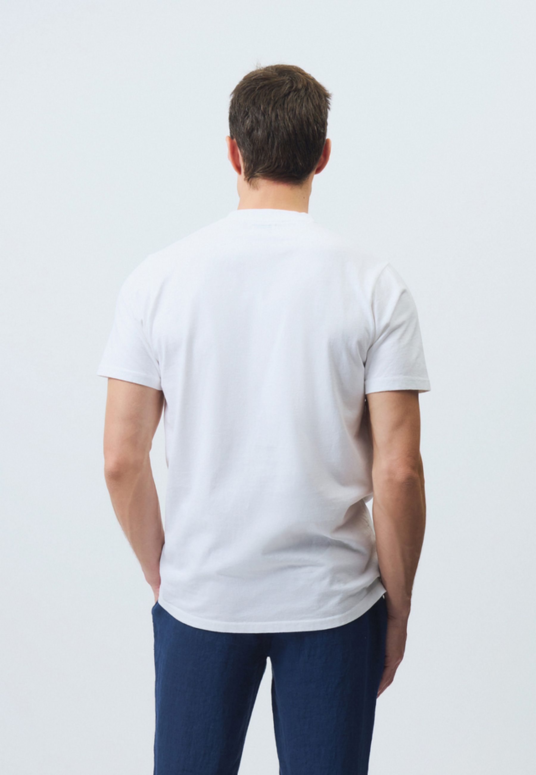 T-shirt uomo girocollo realizzata in jersey di puro cotone, proposta in tinta unita bianca. Un capo essenziale, progettato per garantire comfort quotidiano e versatilità di abbinamento.