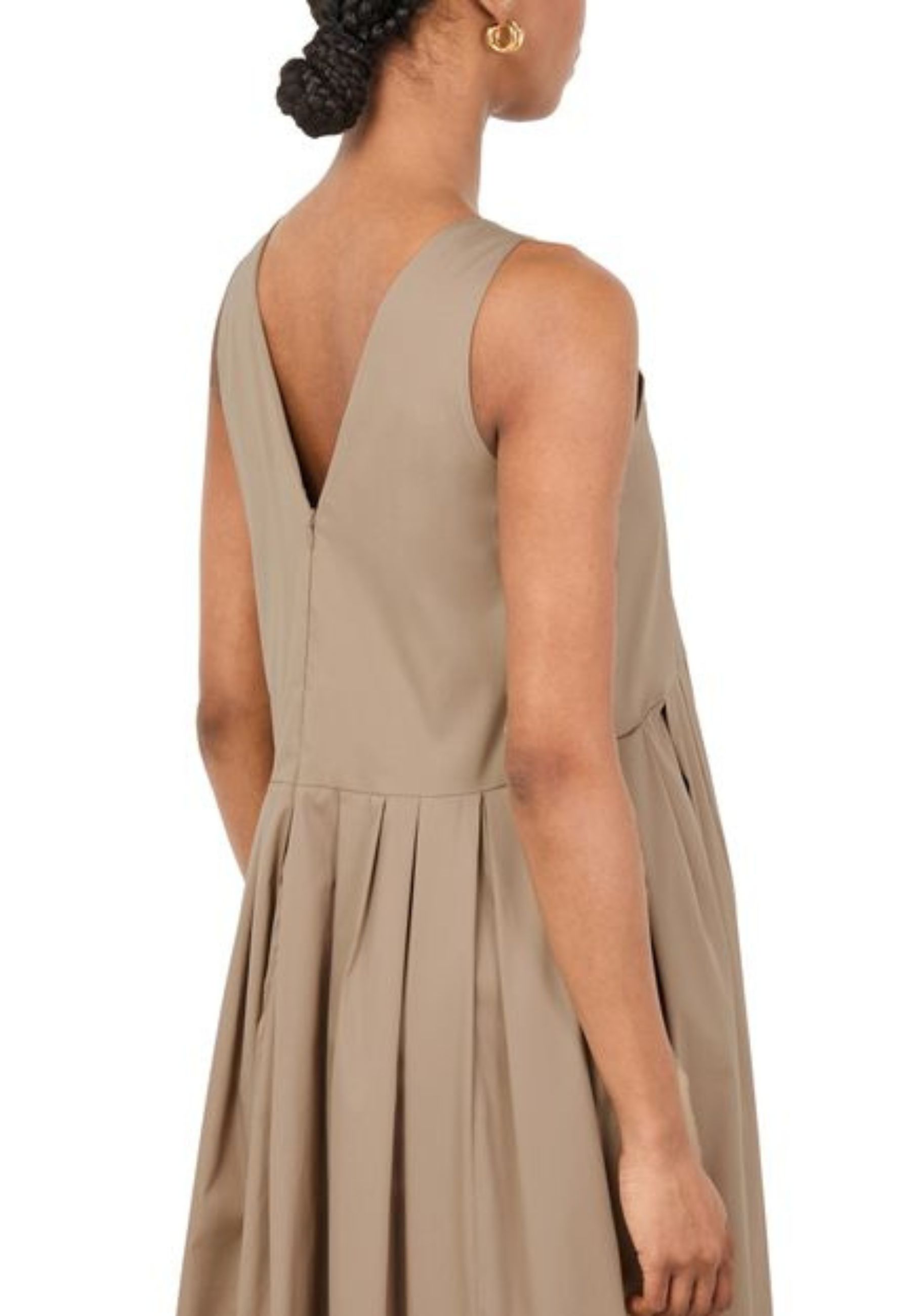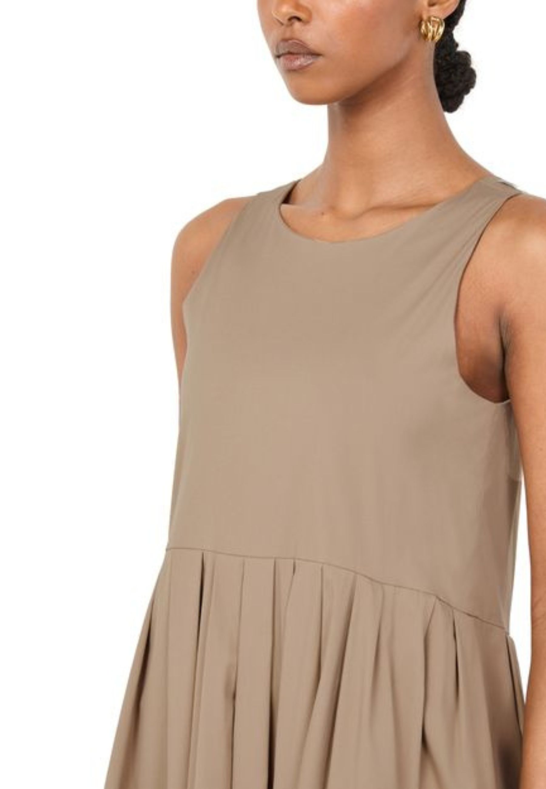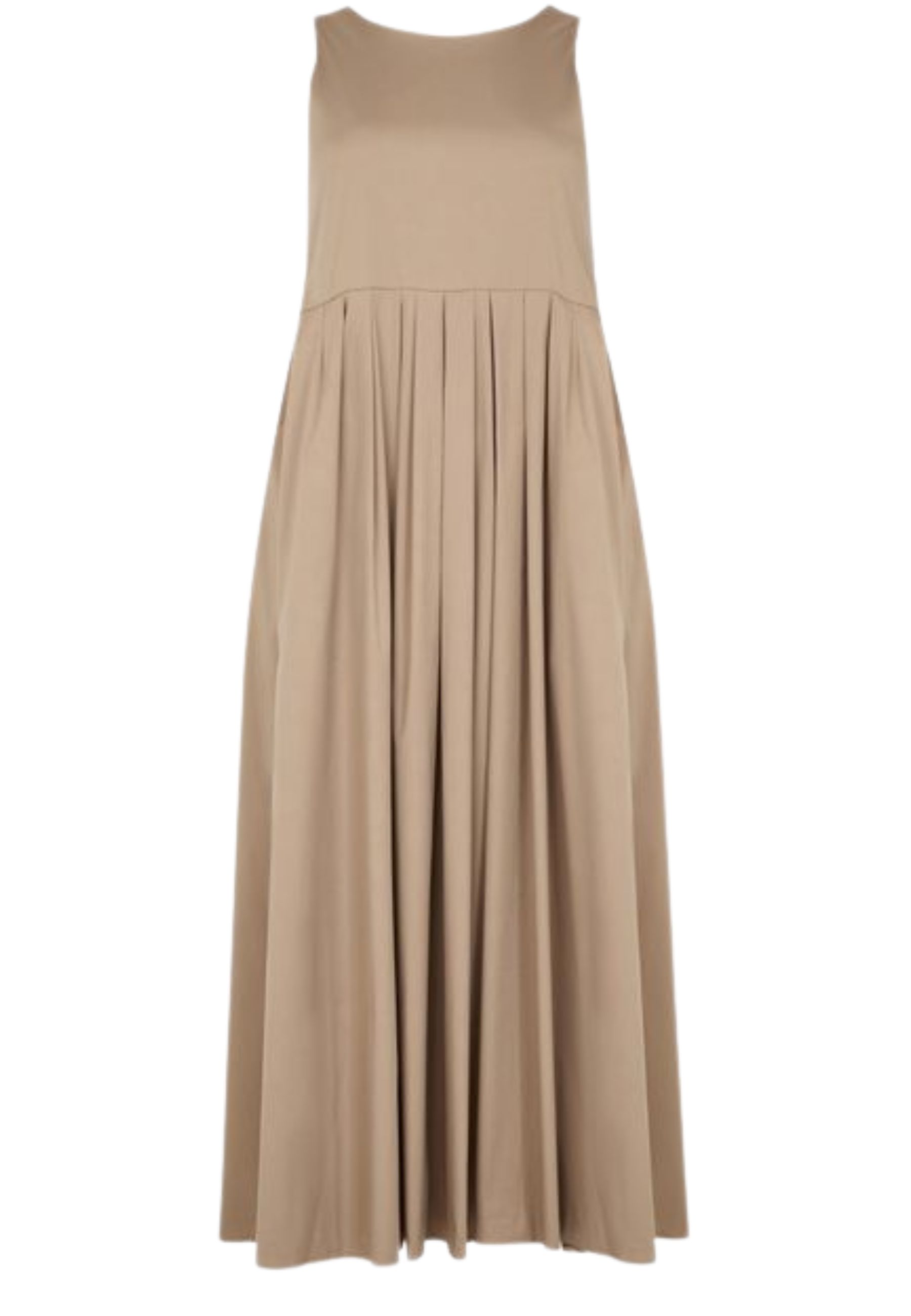 Raffinato e minimal, questo abito lungo Max Mara è realizzato in tessuto fluido e leggero che garantisce comfort e libertà di movimento. Il modello presenta una linea svasata con corpino liscio e ampie pieghe sul davanti che creano un elegante effetto drappeggiato. Lo scollo rotondo e la silhouette essenziale rendono questo capo un must-have per chi ama lo stile pulito e sofisticato.