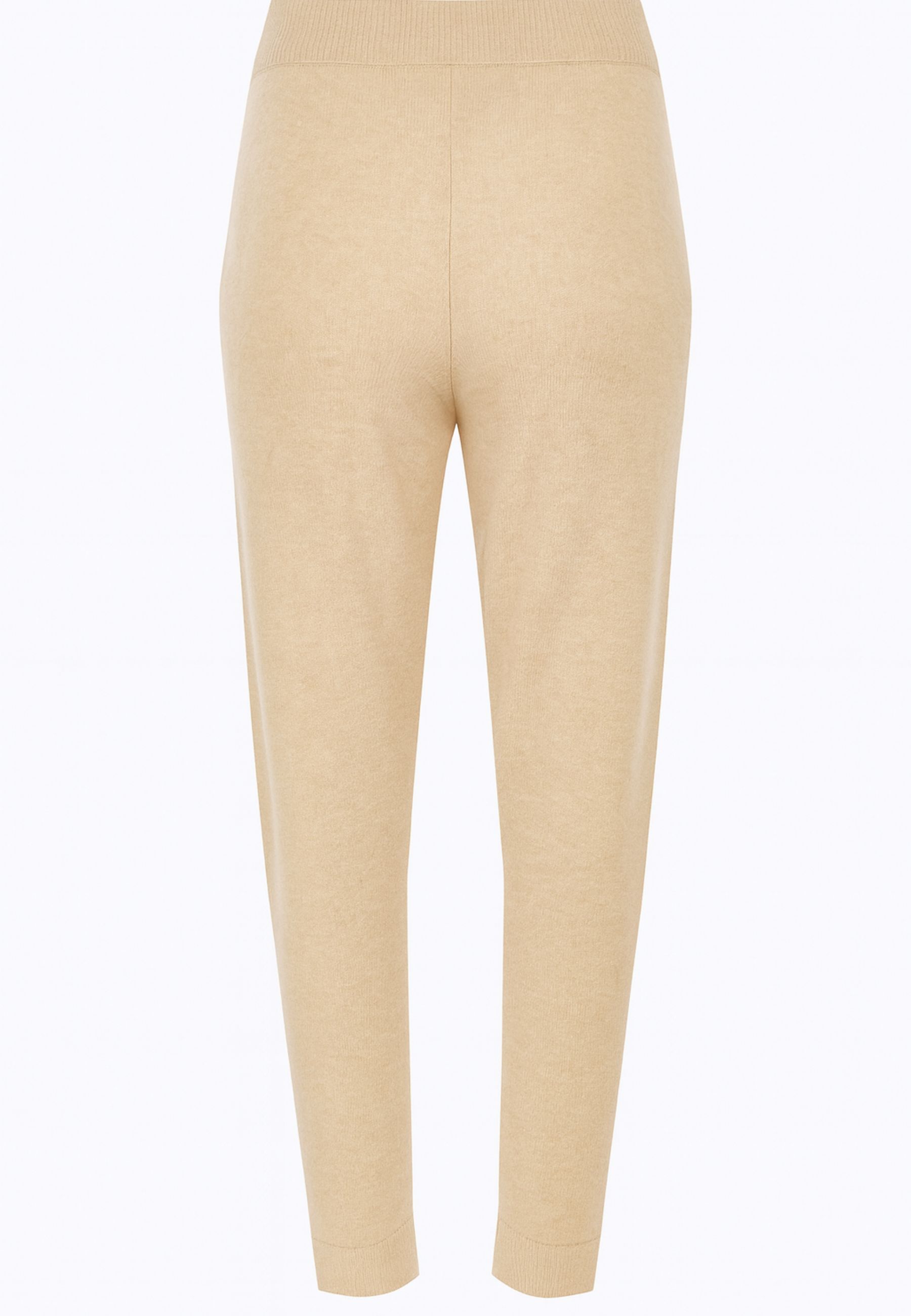 La vita elasticizzata a coste assicura una vestibilità confortevole e adattabile, mentre le tasche laterali aggiungono praticità senza rinunciare alleleganza. La linea morbida e leggermente affusolata valorizza la silhouette mantenendo uno stile rilassato e moderno.