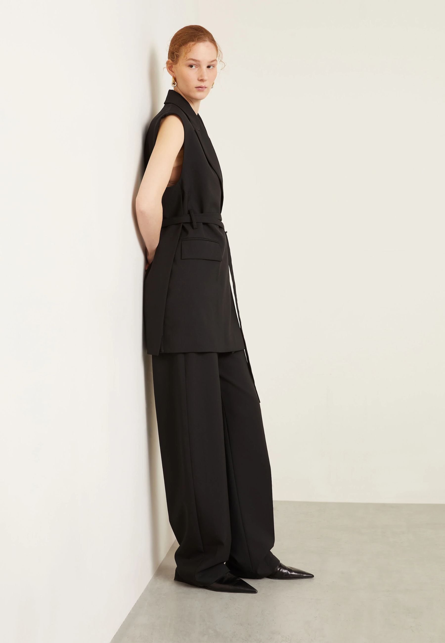 Elegante e minimale, questo pantalone firmato Sportmax è realizzato in pura lana vergine, un tessuto pregiato che garantisce comfort, struttura e raffinatezza. Il design presenta una vita alta e una linea a gamba dritta, pensata per valorizzare la silhouette con uneleganza contemporanea.