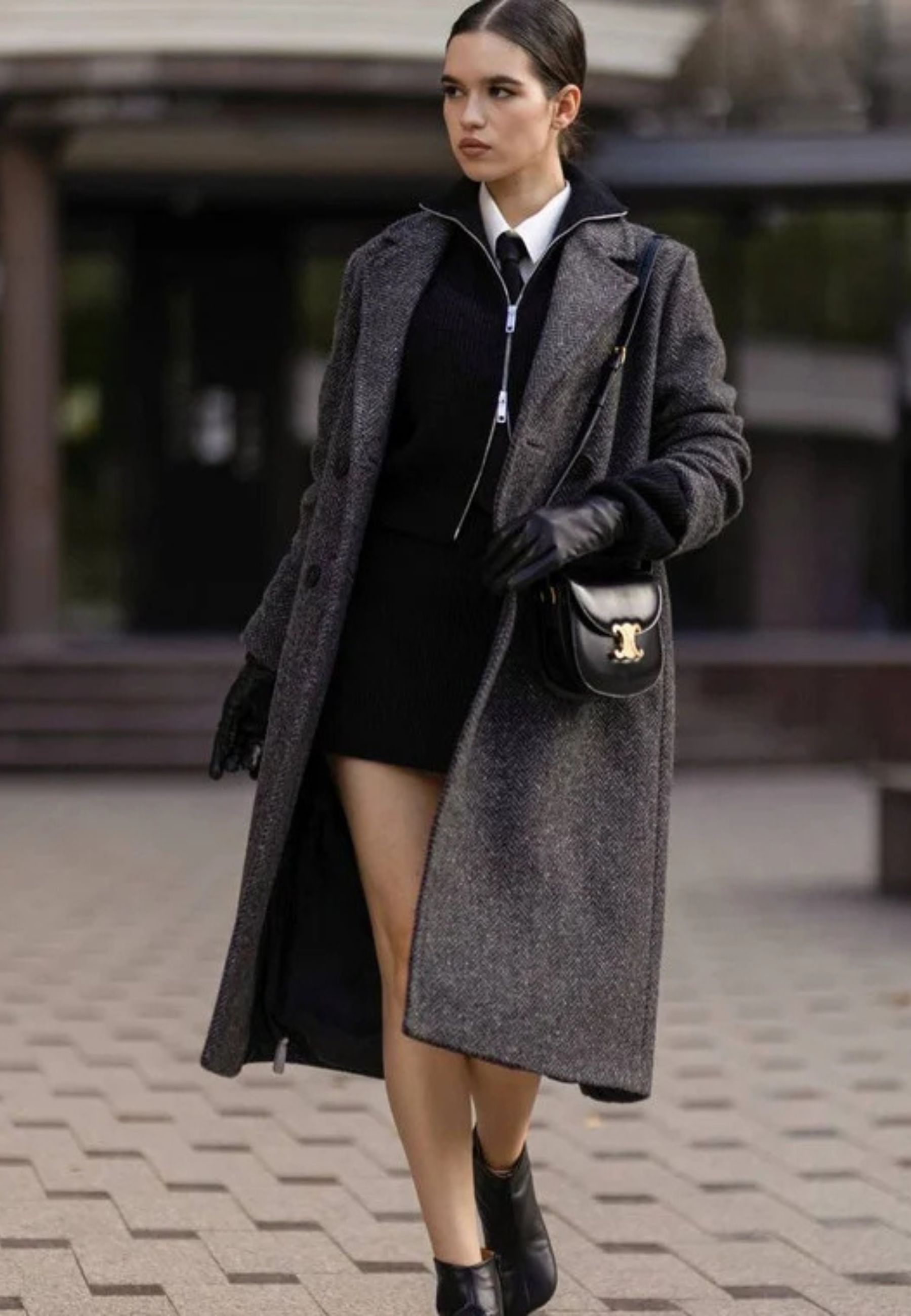 Dettagli a maglia rasata frontali e posteriori impreziosiscono il capo, rendendolo un must-have per look eleganti o casual chic.
