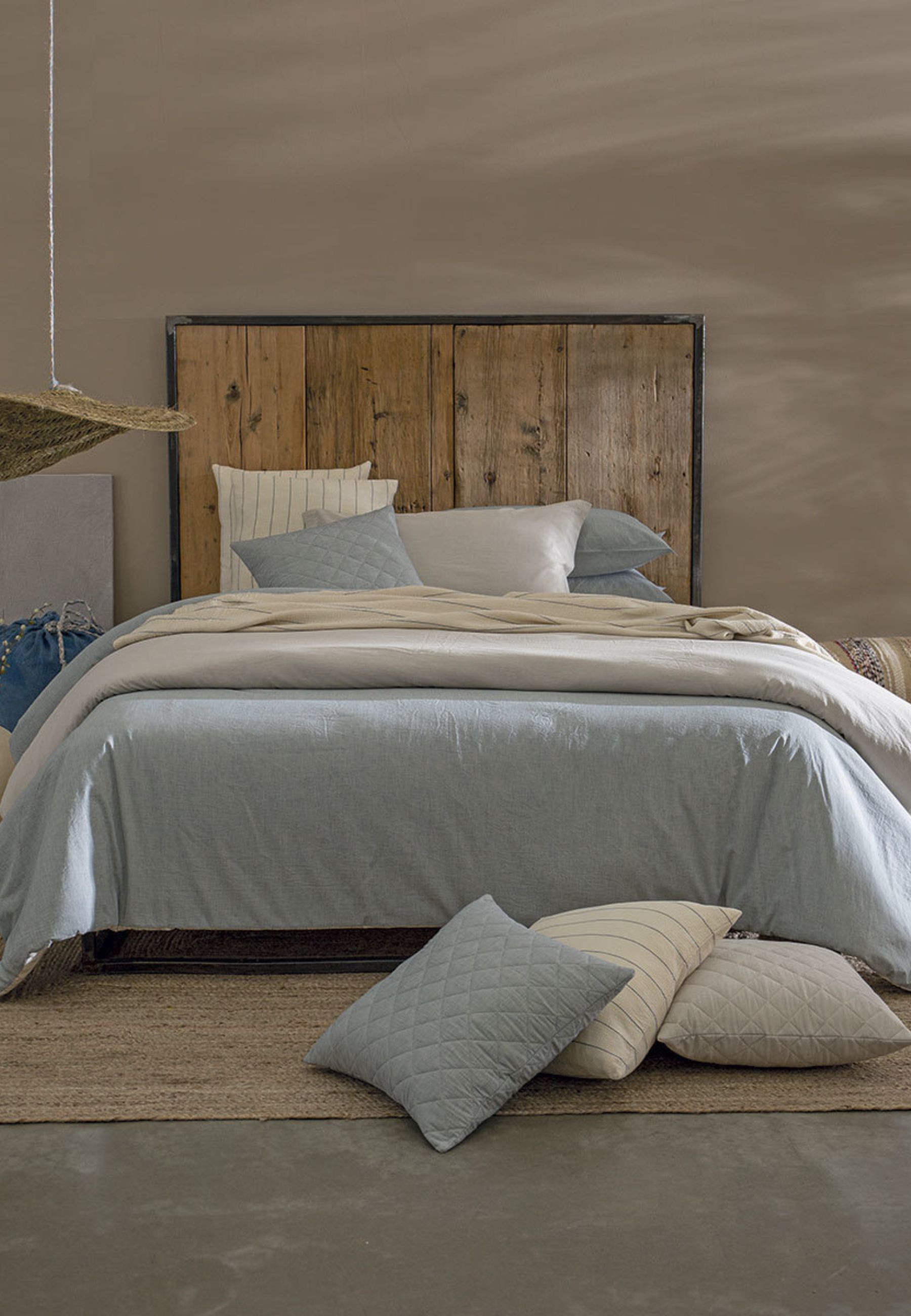 Uneleganza autentica e sostenibile contraddistingue il completo lenzuola matrimoniale Dondi Green, realizzato in 100% cotone organico tinto in filo con luso esclusivo di pregiate tinture vegetali.