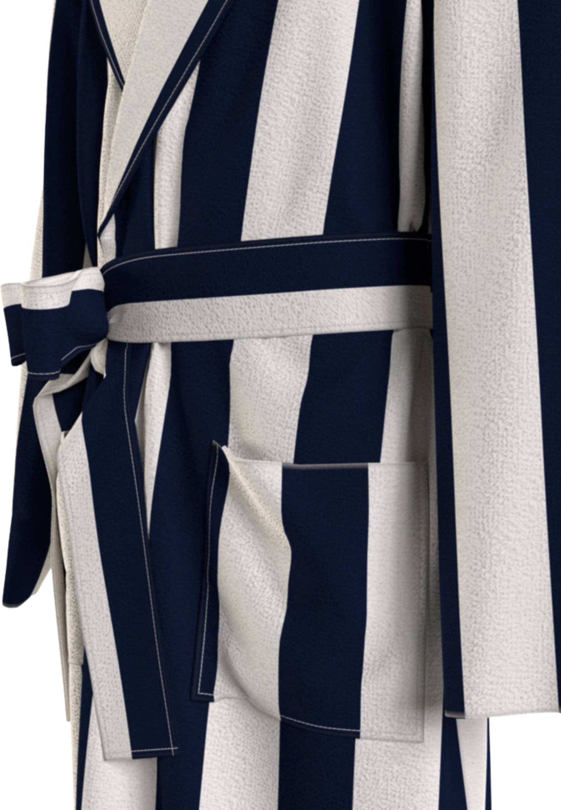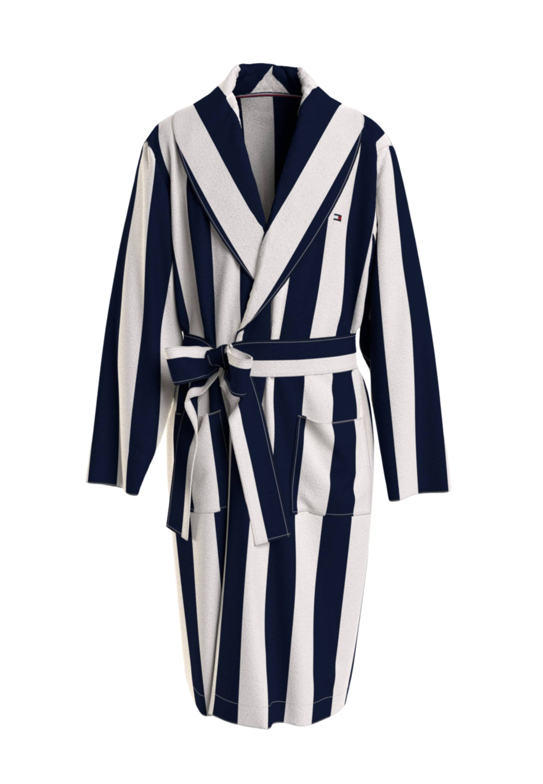 Accappatoio Tommy Hilfiger realizzato in spugna di cotone spessa, caratterizzato da un elegante motivo a righe nere e bianche. Pensato per offrire massimo comfort e assorbenza, è ideale dopo la doccia o per momenti di relax in casa.