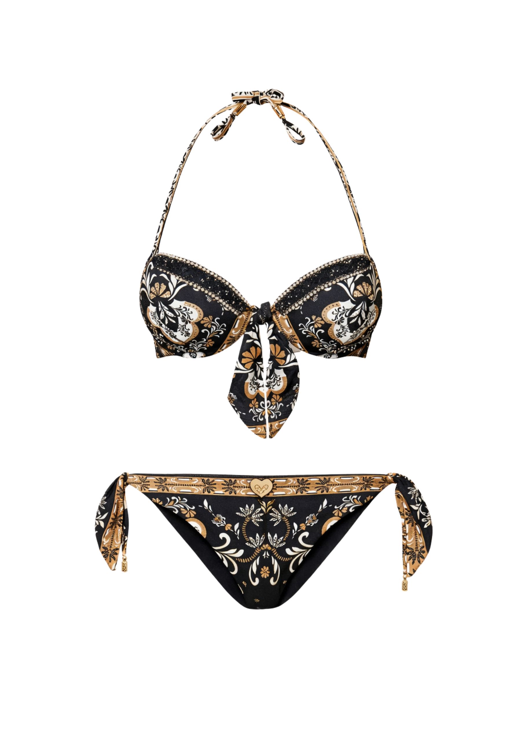 Bikini composto da push-up da bagno e tanga coordinato, realizzato con stampa foulard esclusiva Twinset piazzata, pensata per valorizzare il design del capo con un effetto elegante e ricercato.