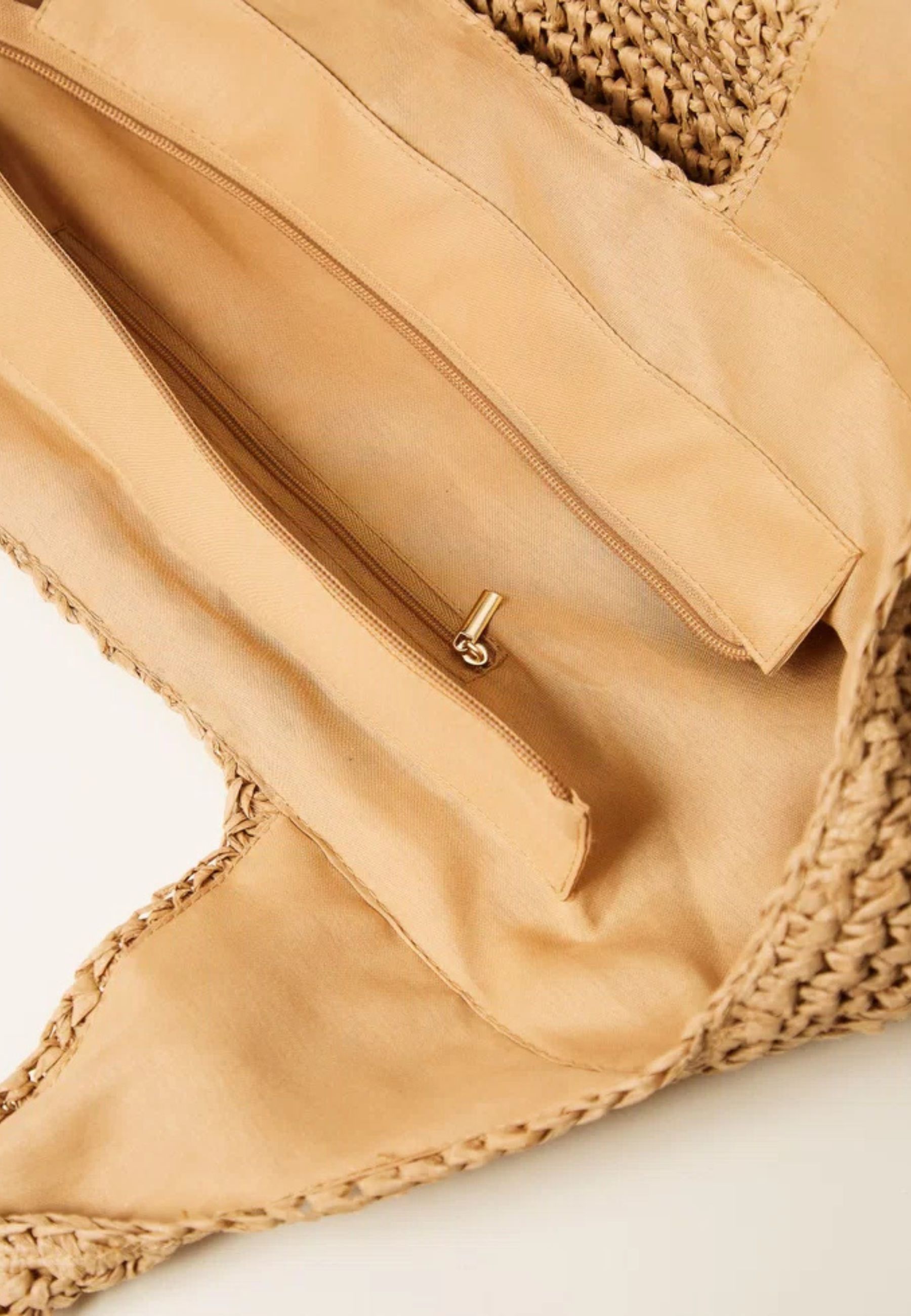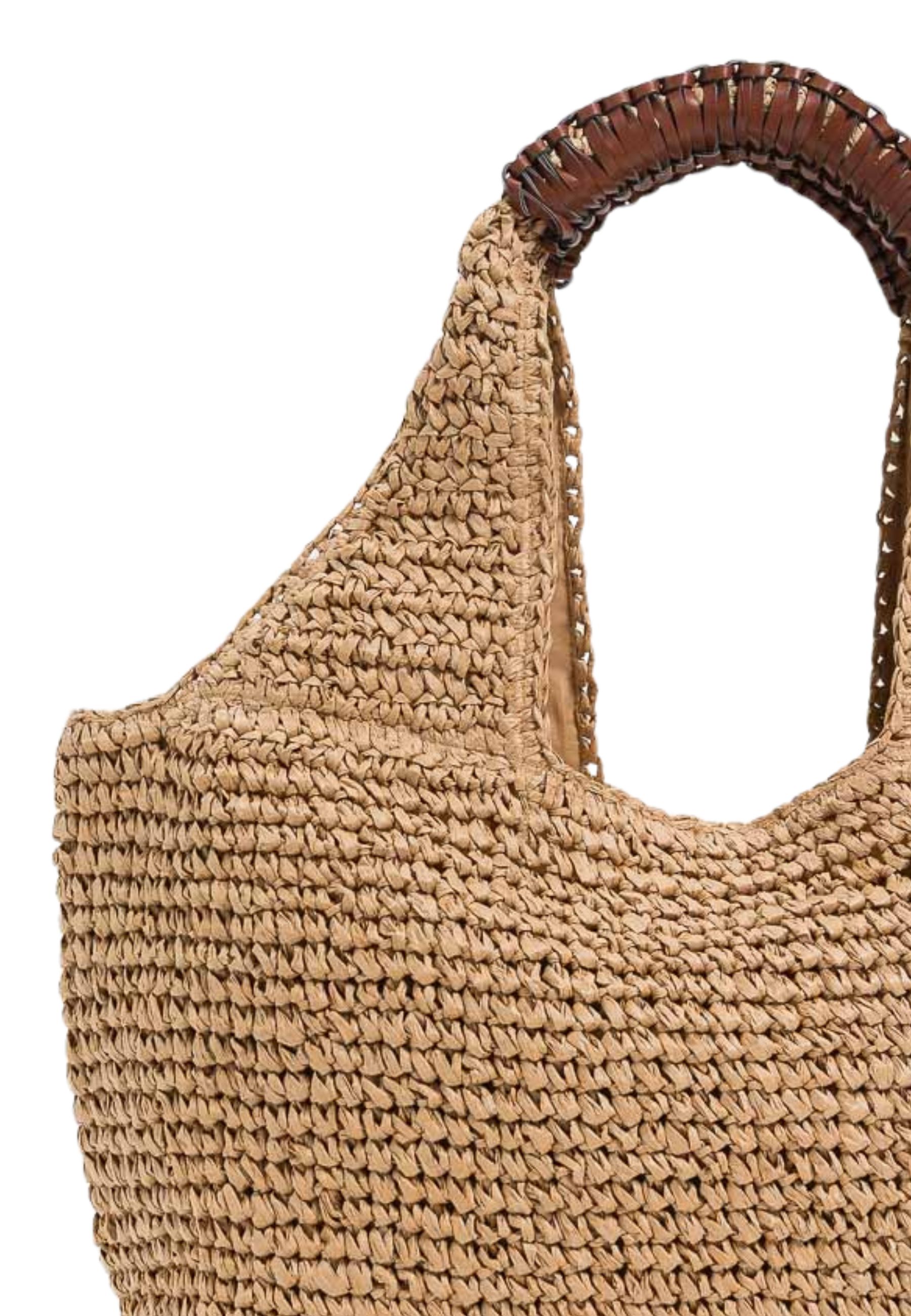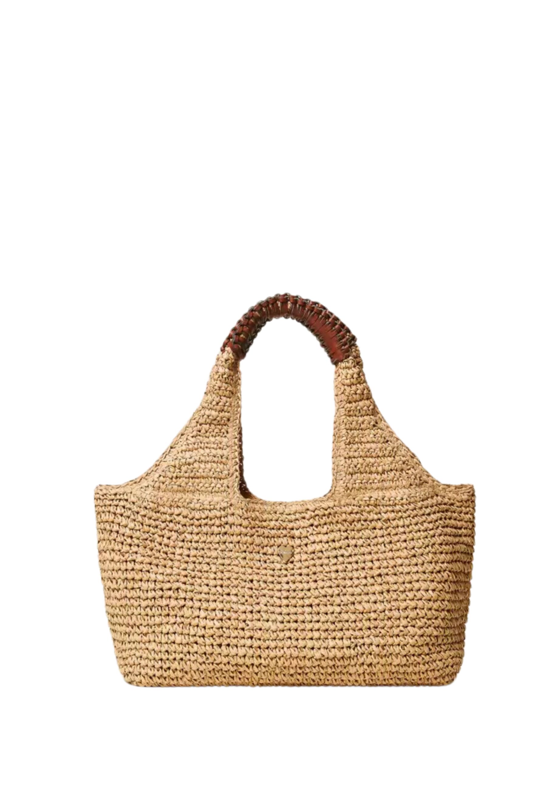 Borsa hobo Twinset realizzata in rafia di cellulosa intrecciata a mano, pensata per valorizzare look estivi con uno stile naturale e raffinato. Il modello è completato da manico rifinito con fettuccia effetto pelle intrecciata a mano, che garantisce resistenza e comfort. Dotata di chiusura con zip e fodera interna, è impreziosita dal logo a cuore in metallo applicato sul davanti. Una borsa capiente e funzionale, ideale per luso quotidiano e il tempo libero.