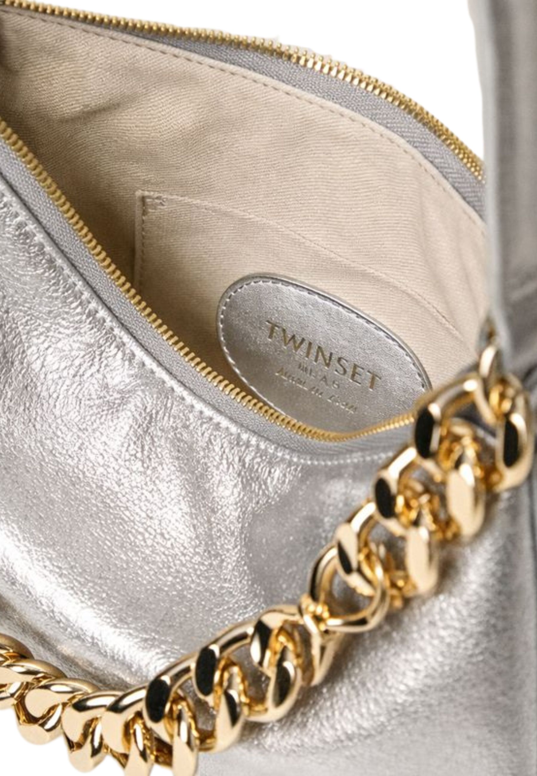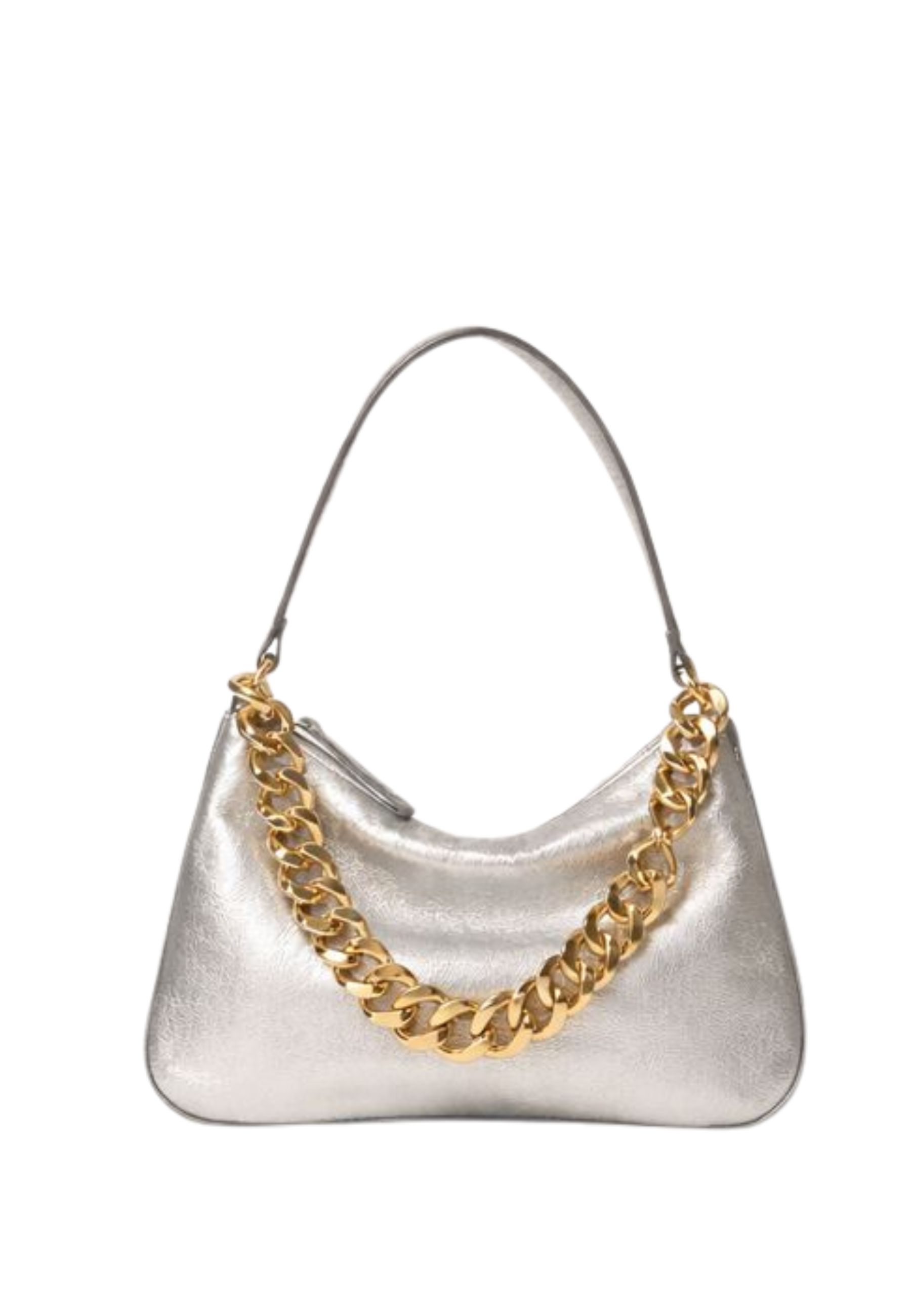 La borsa hobo Liliane in versione Silver è un accessorio dal forte impatto contemporaneo, realizzato in pelle di vitello nappato pieno fiore laminato, caratterizzata da una finitura luminosa e sofisticata. Il corpo a colonna definisce una silhouette pulita ed elegante, valorizzata dal logo impresso a caldo sul fronte. Linterno è foderato in misto cotone, pensato per un utilizzo quotidiano funzionale e raffinato.