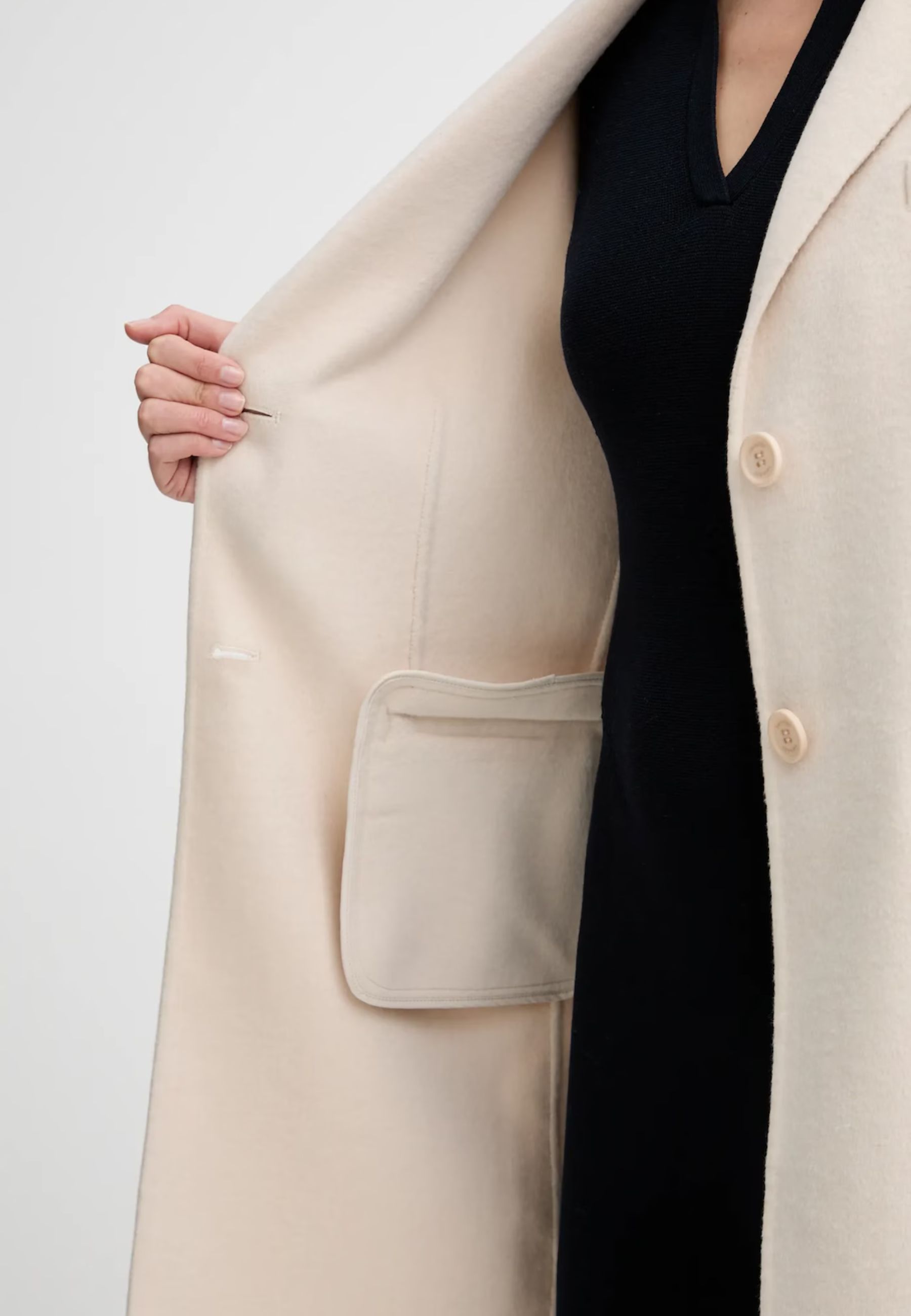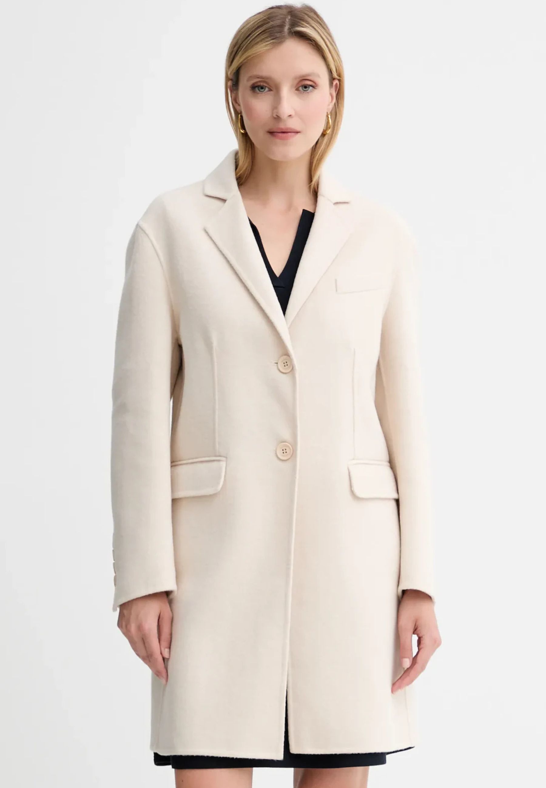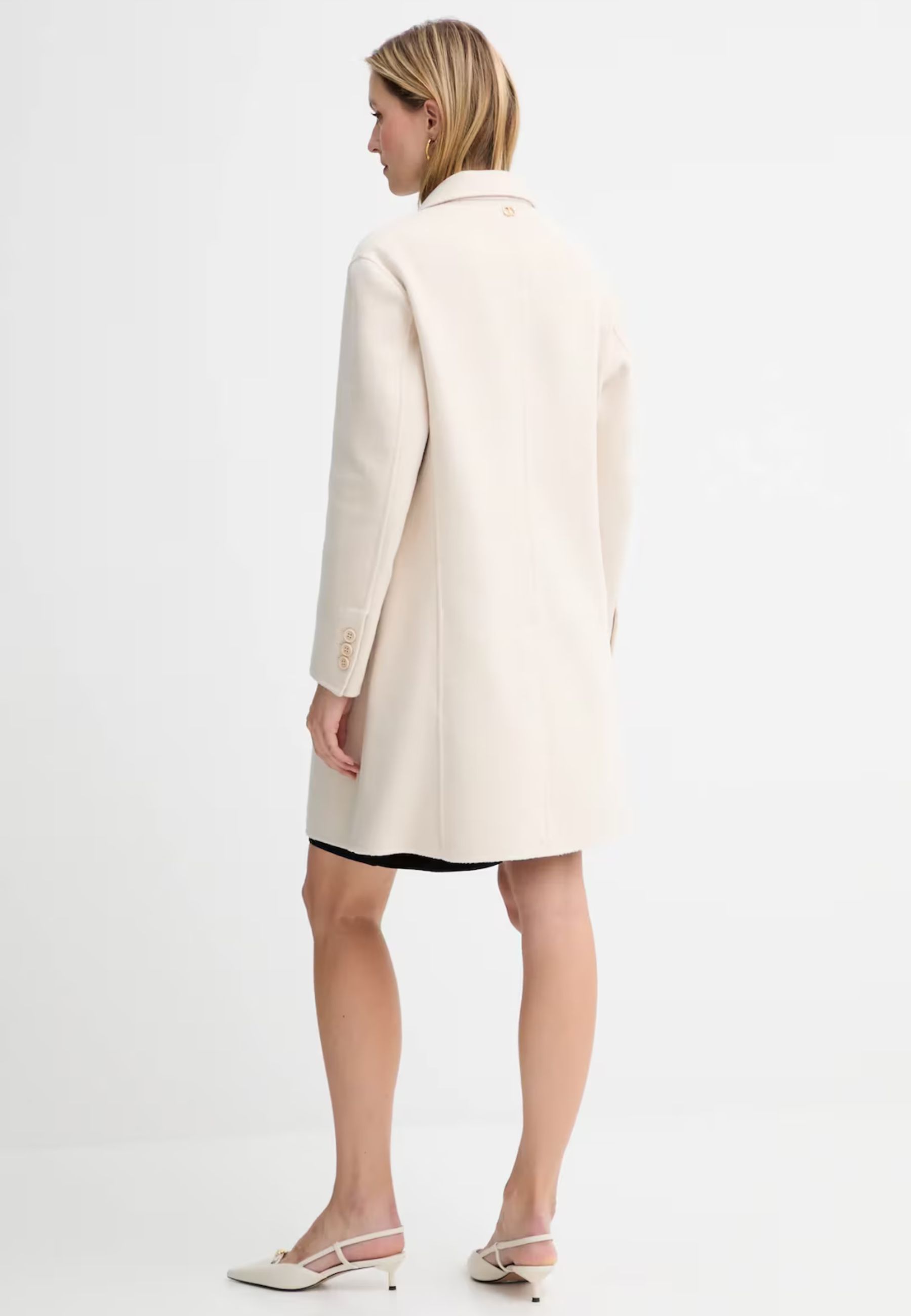 Cappotto Twinset realizzato in tessuto a tinta unita di alta qualità, senza imbottitura né fodera interna, ideale per chi desidera un capo leggero, versatile e sofisticato. Grazie alle naturali proprietà termoregolatrici della lana, il cappotto mantiene il calore nelle giornate più fredde e offre freschezza quando la temperatura si alza.