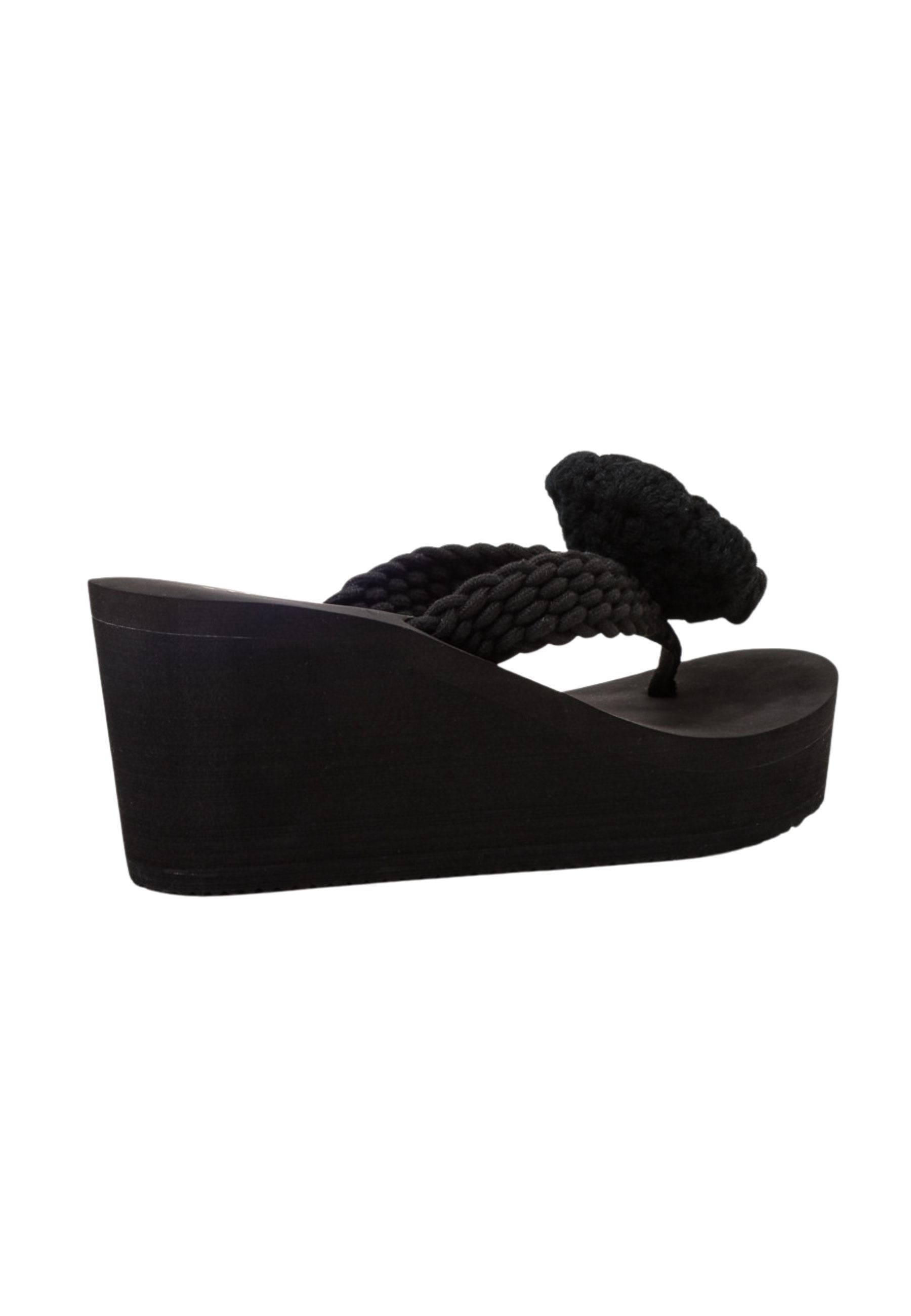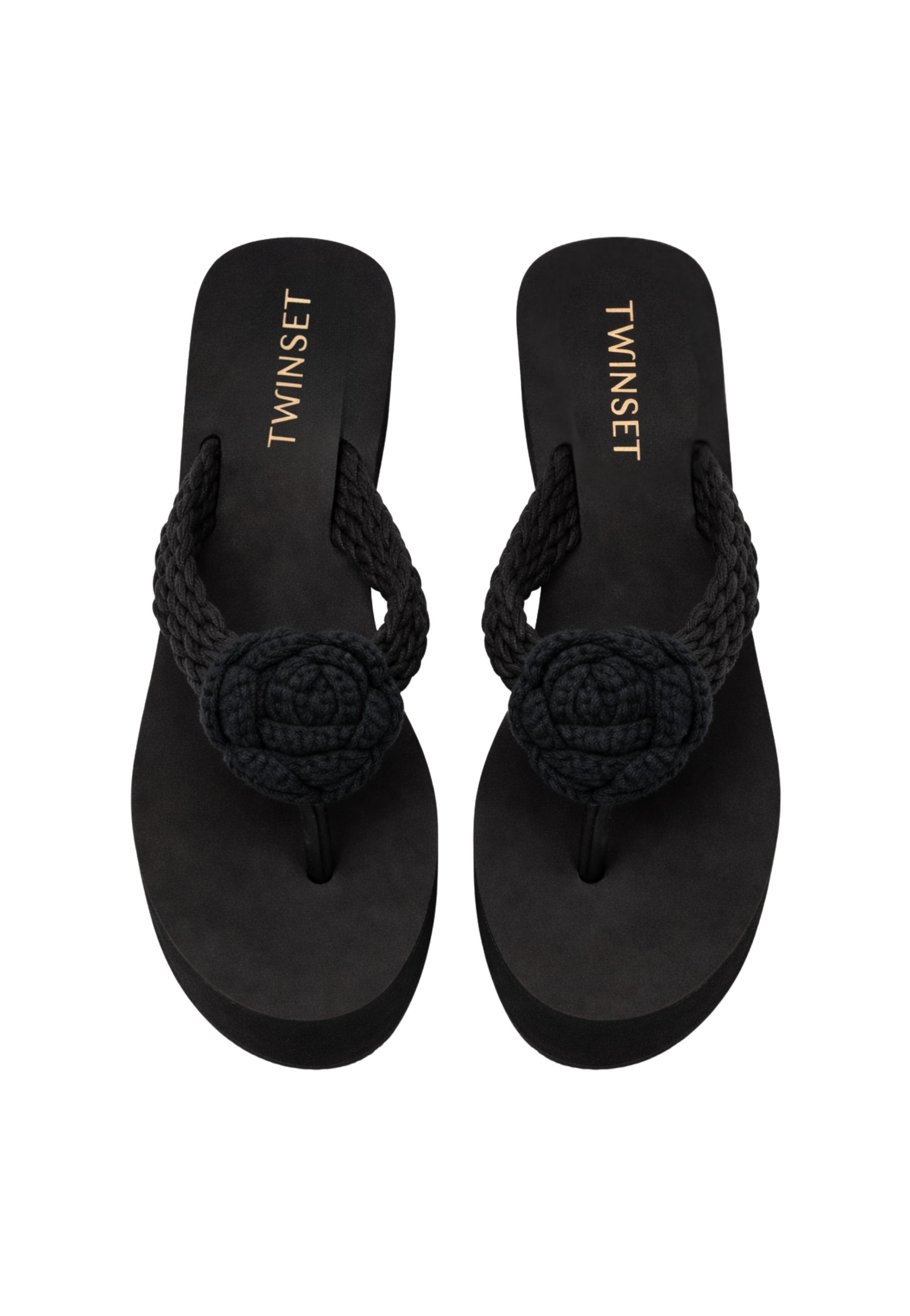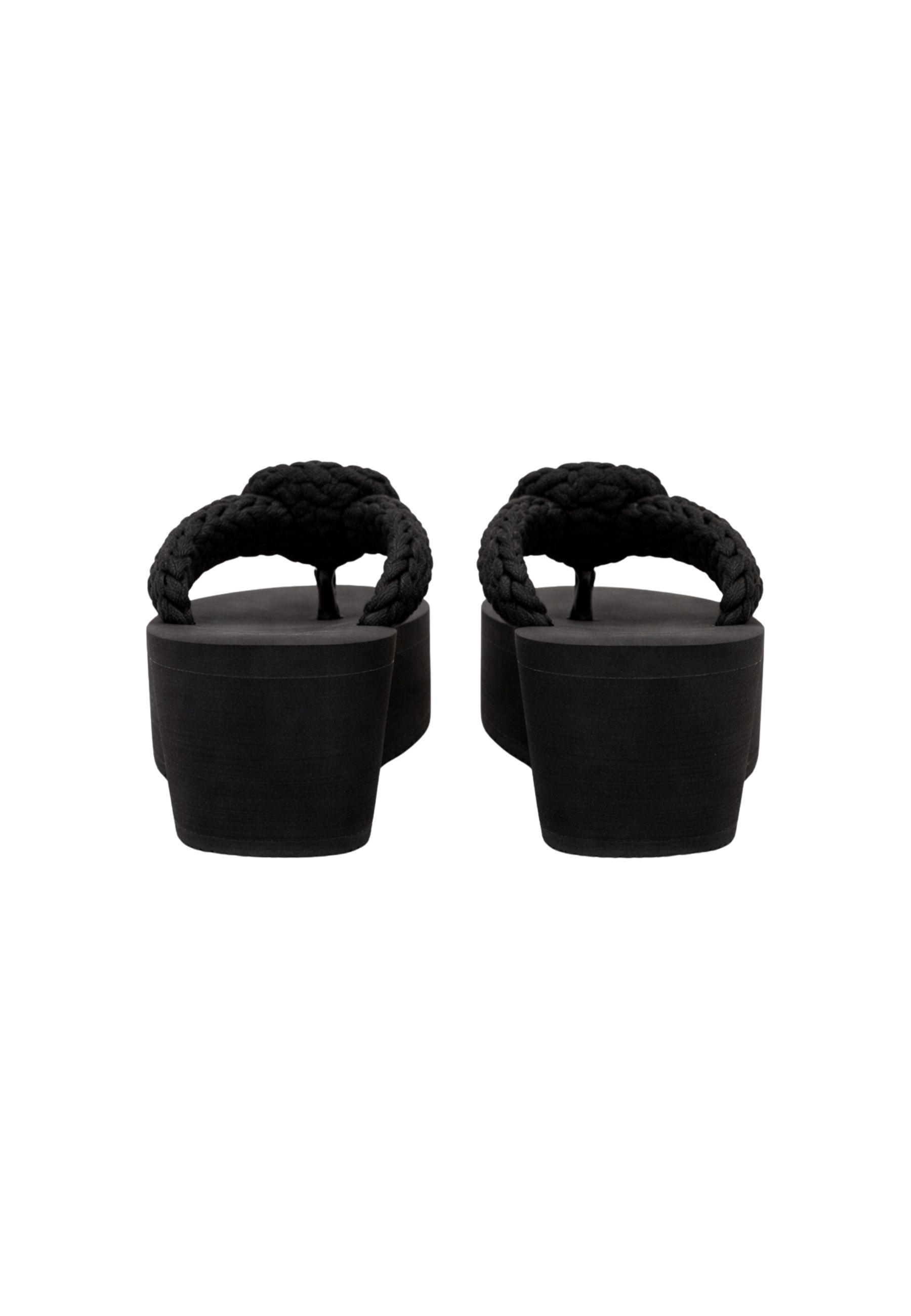 Ciabatte platform dal design contemporaneo e deciso, caratterizzate da maxi fascia intrecciata con applicazione rosette tono su tono. La linea pulita della suola si combina con il dettaglio materico superiore, creando un equilibrio tra femminilità e carattere.