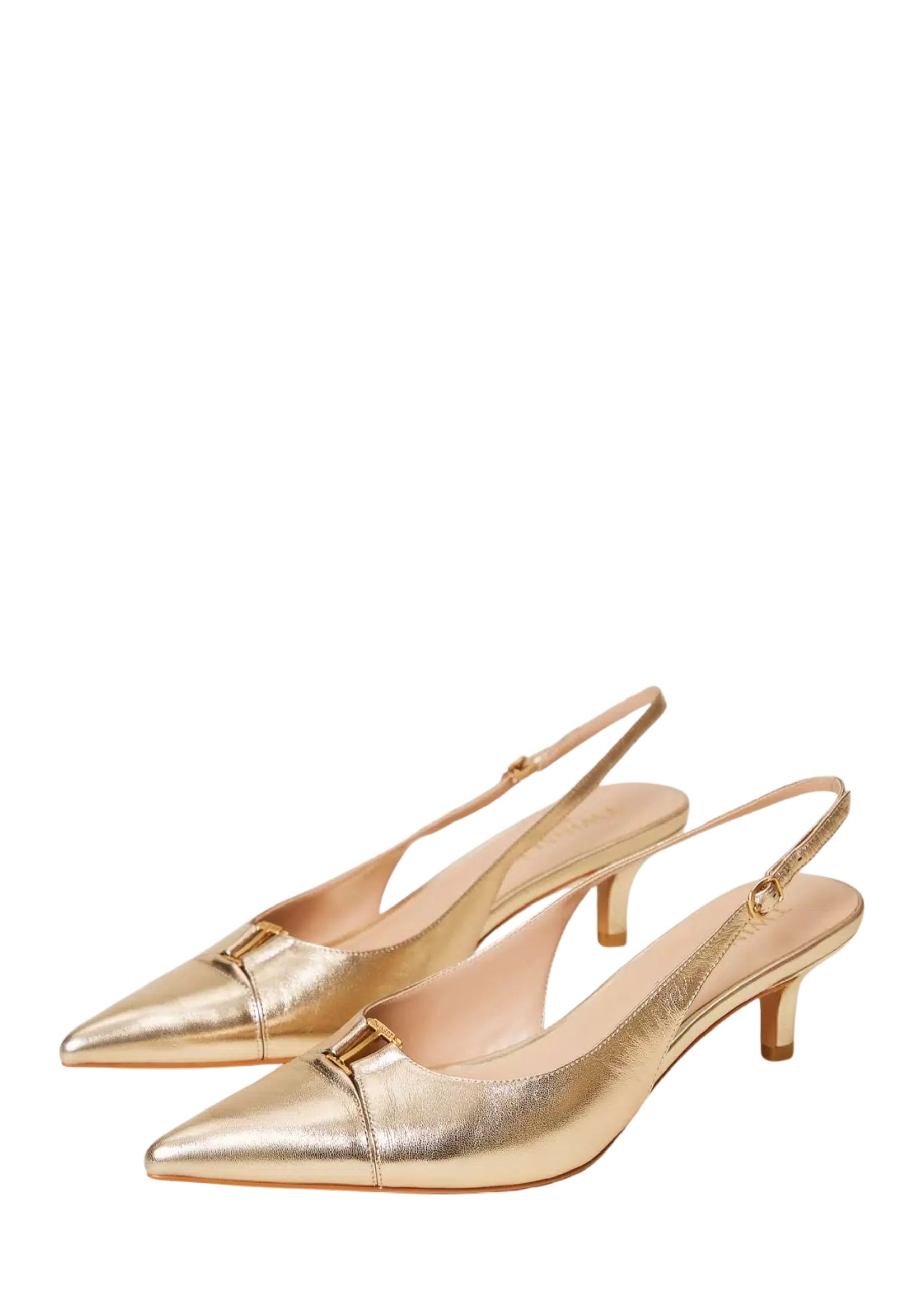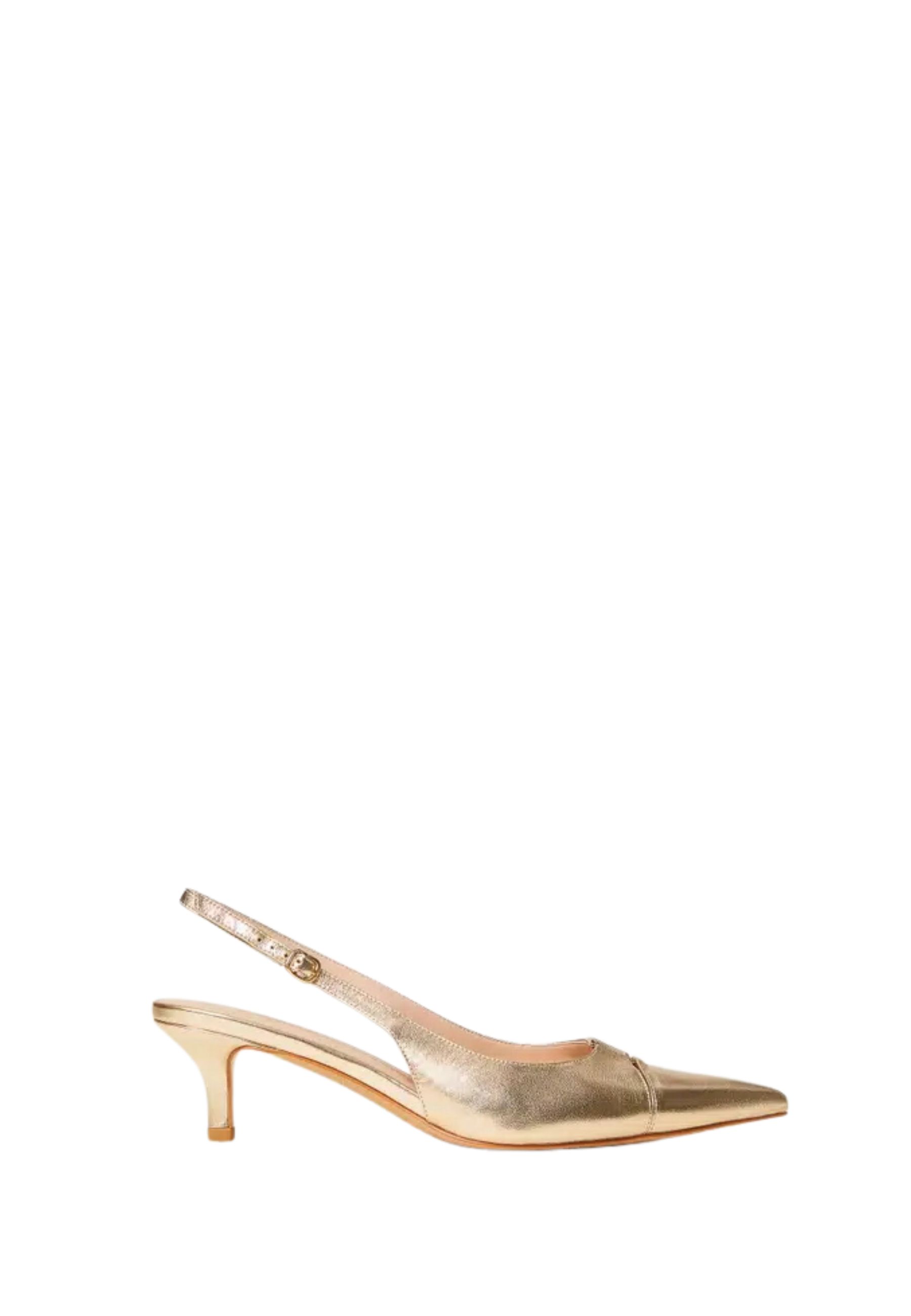 Décolleté sling back in pelle con logo in metallo, punta sfilata, tacco basso a stiletto e fondo in tunit.