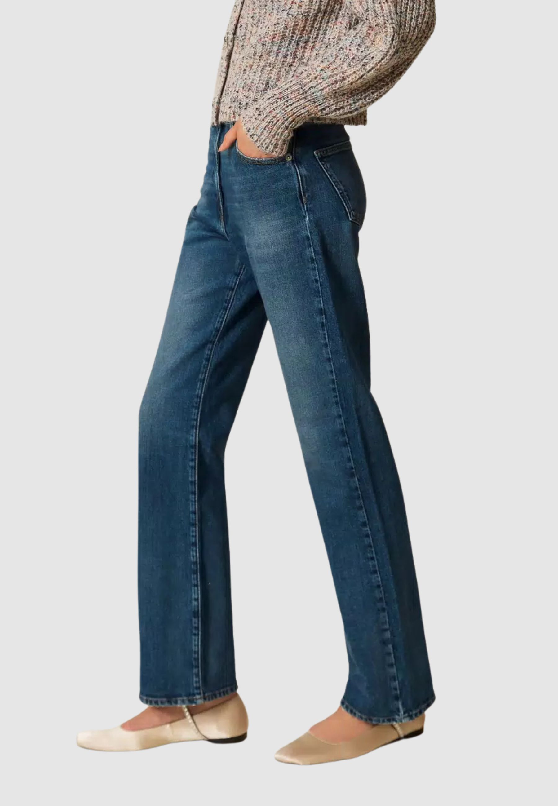 - Questi jeans hanno una linea dritta.