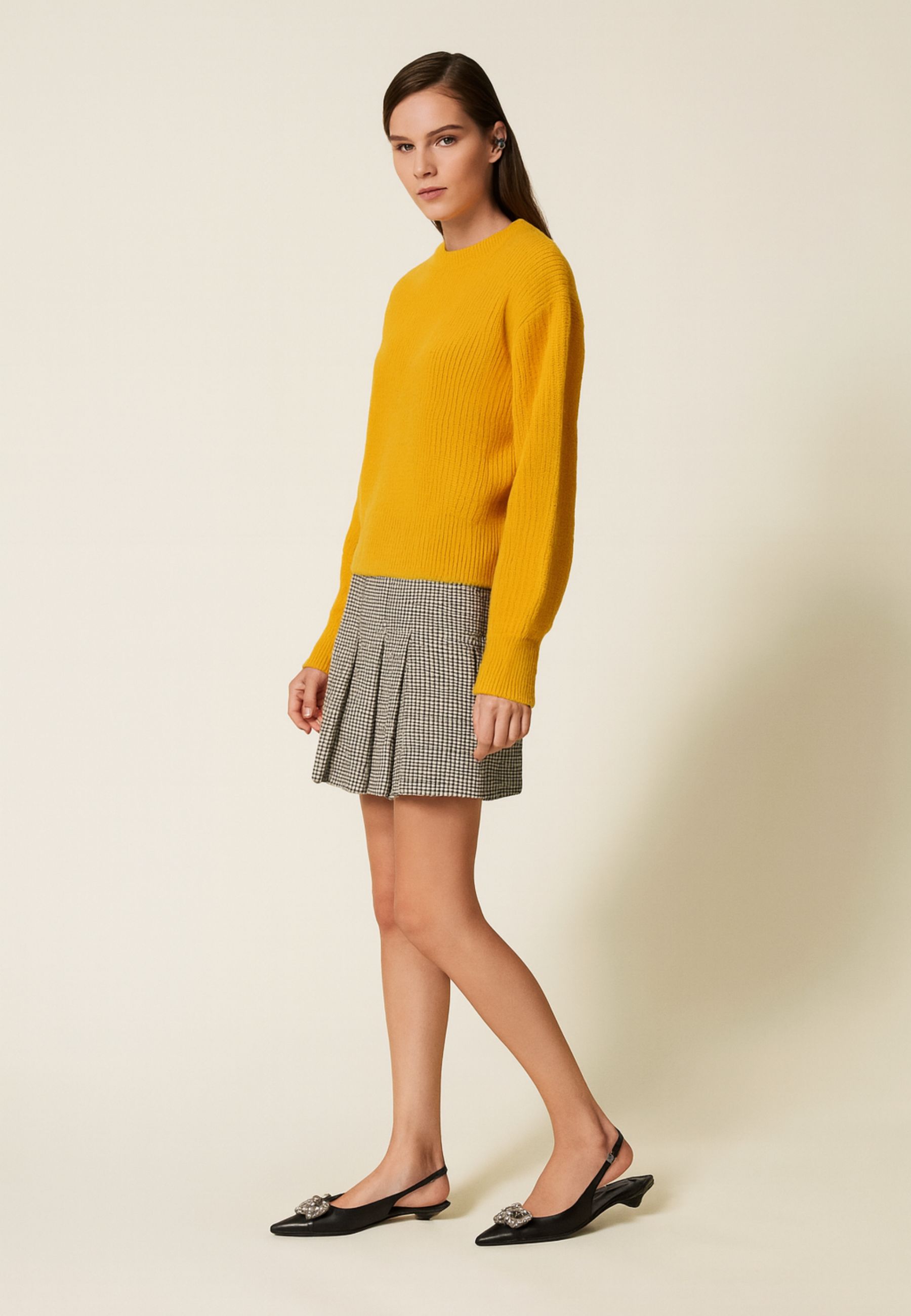 Dona calore e morbidezza ai tuoi look con questa maglia in filato misto lana e alpaca, caratterizzata da un design essenziale e contemporaneo. Il modello presenta un fit confortevole, collo rotondo e maniche lunghe dal volume leggermente morbido che valorizzano la silhouette senza appesantirla. La texture soffice e la tonalità mango aggiungono un tocco di colore elegante e raffinato.