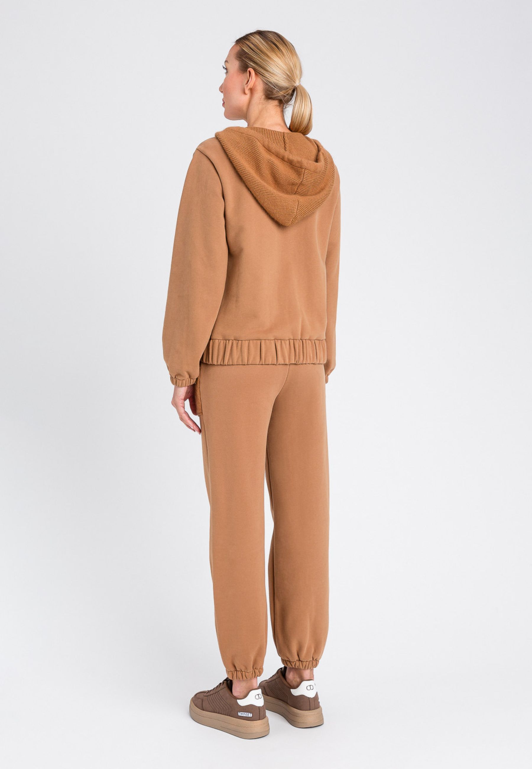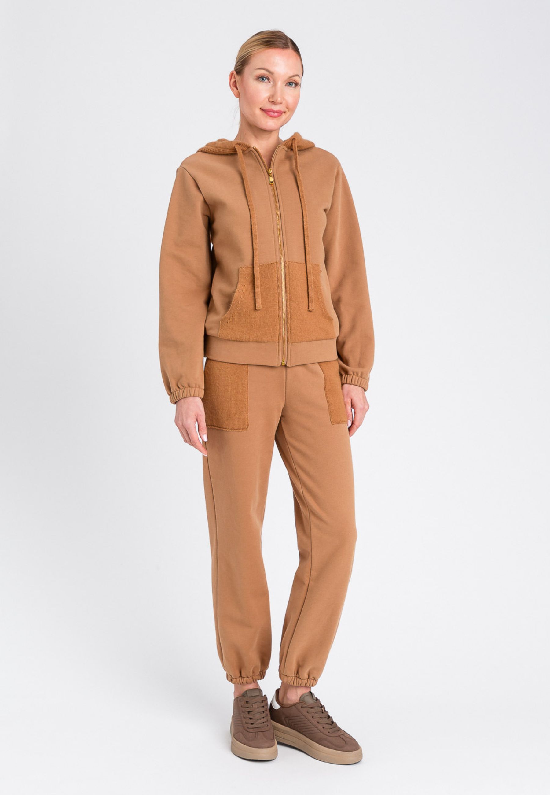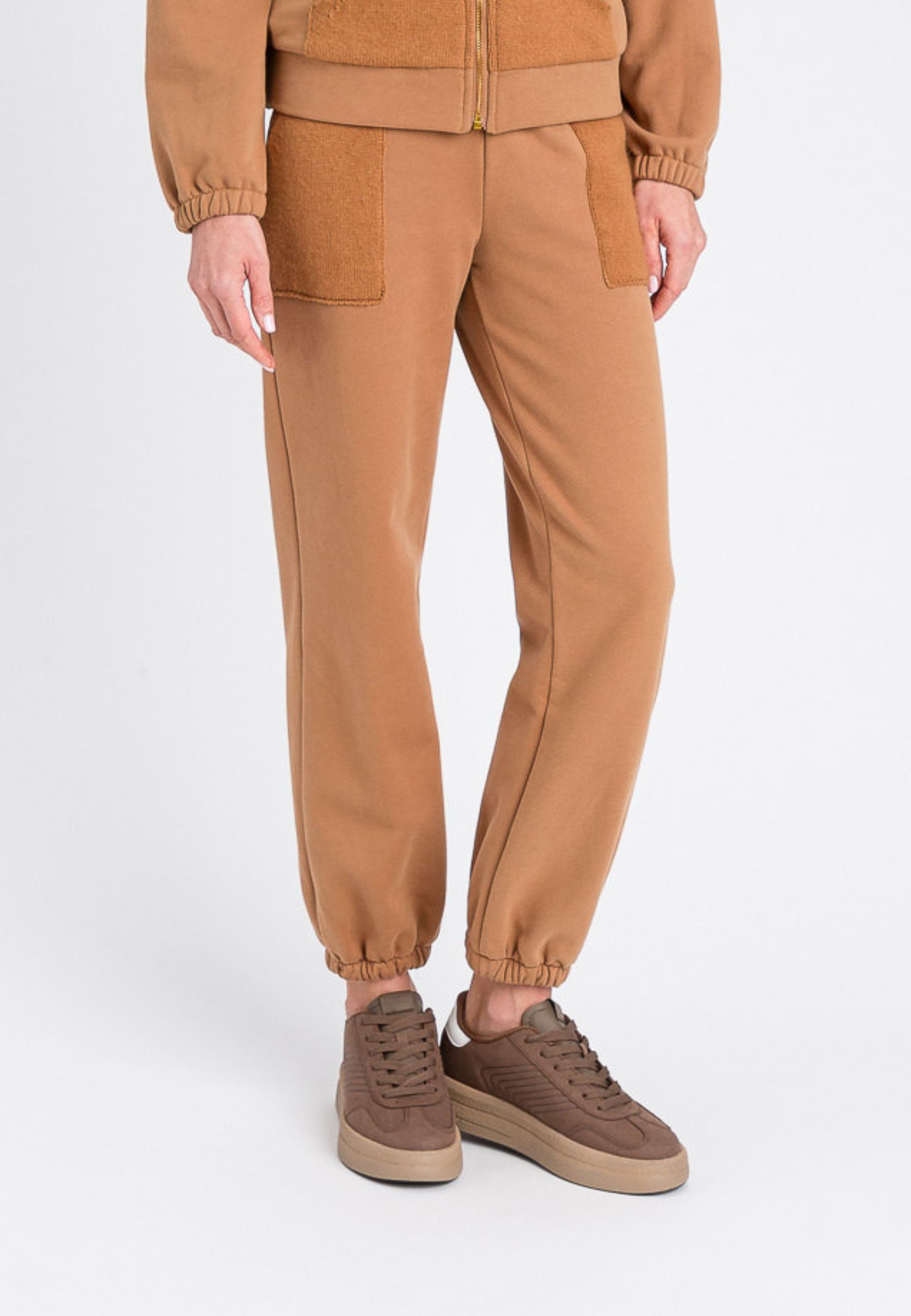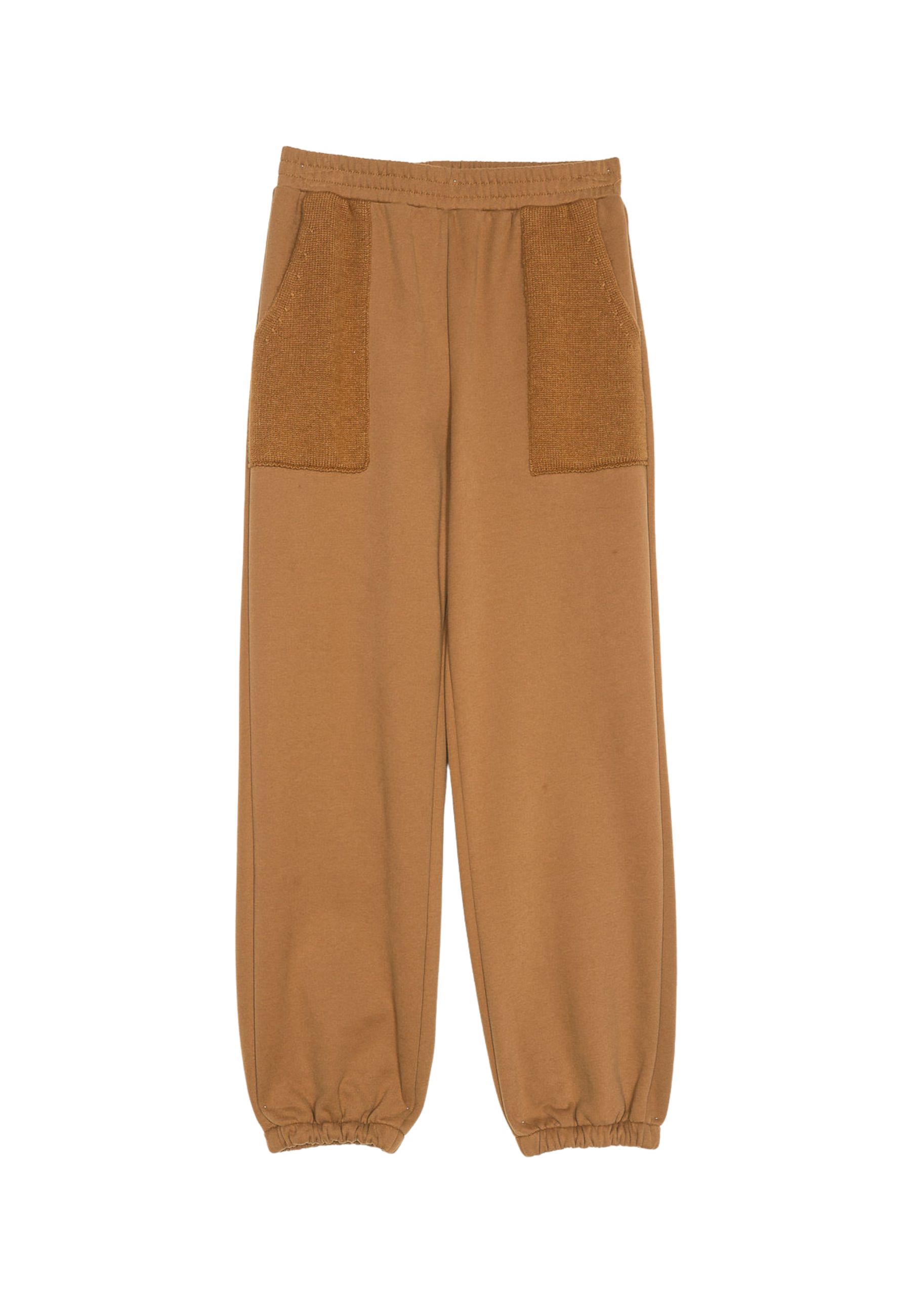 Pantaloni jogger dallo stile casual e confortevole, realizzati in morbido tessuto misto cotone. Il modello presenta vita elasticizzata, tasche applicate in maglia a contrasto e fondo gamba con elastico per un fit pratico e versatile. Perfetti da indossare con la felpa coordinata o per look sporty-chic.