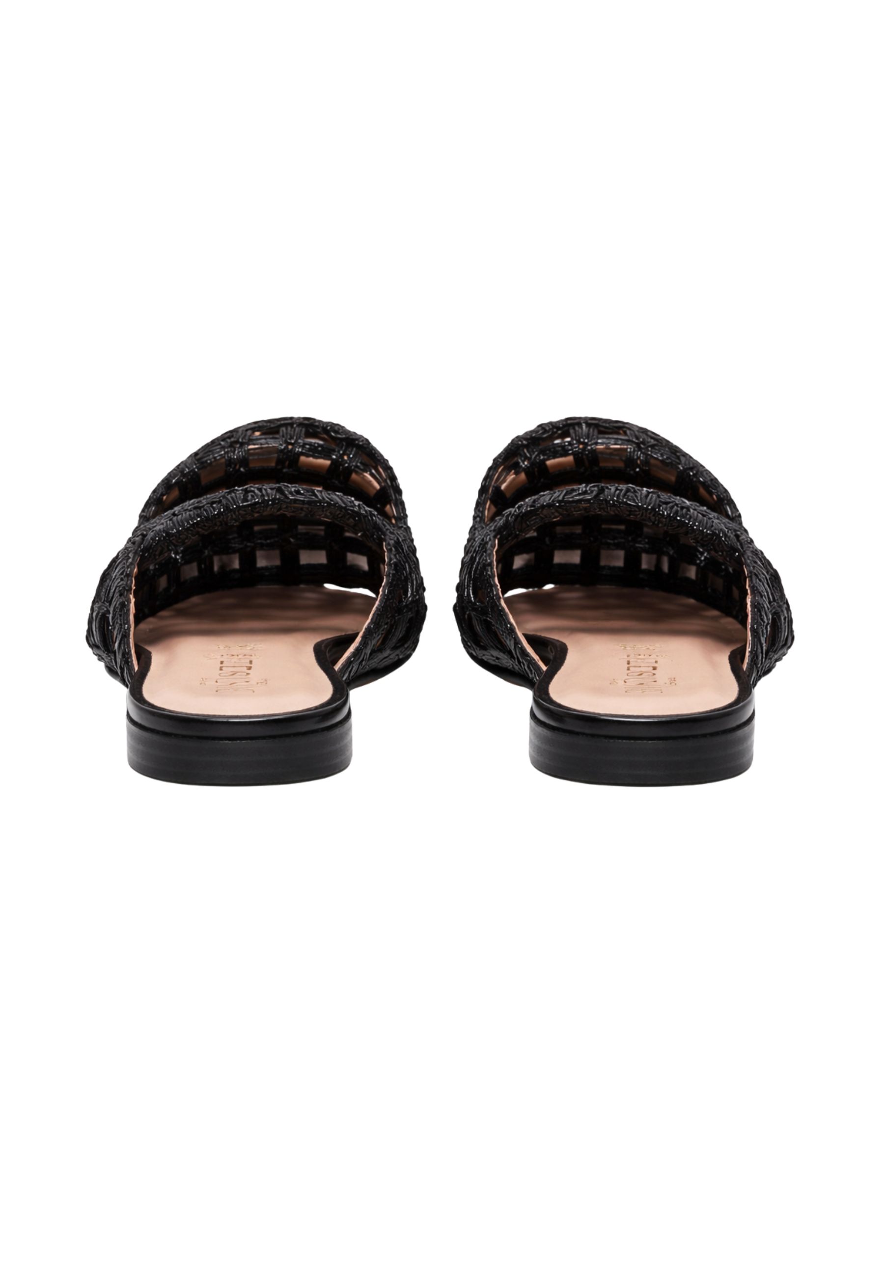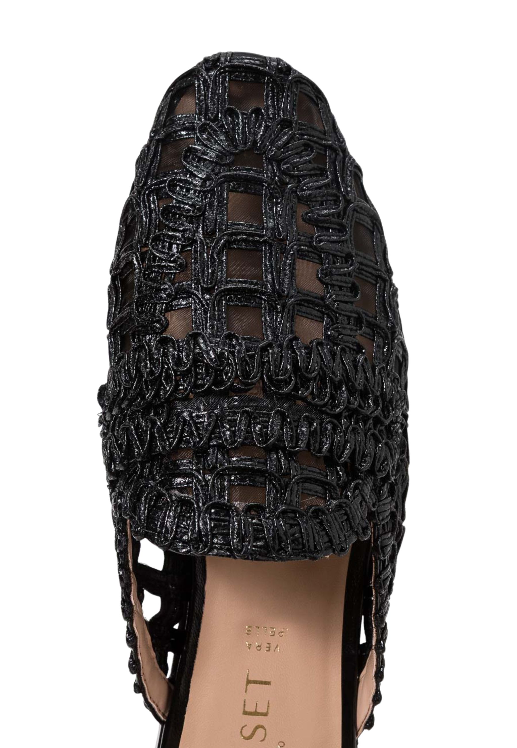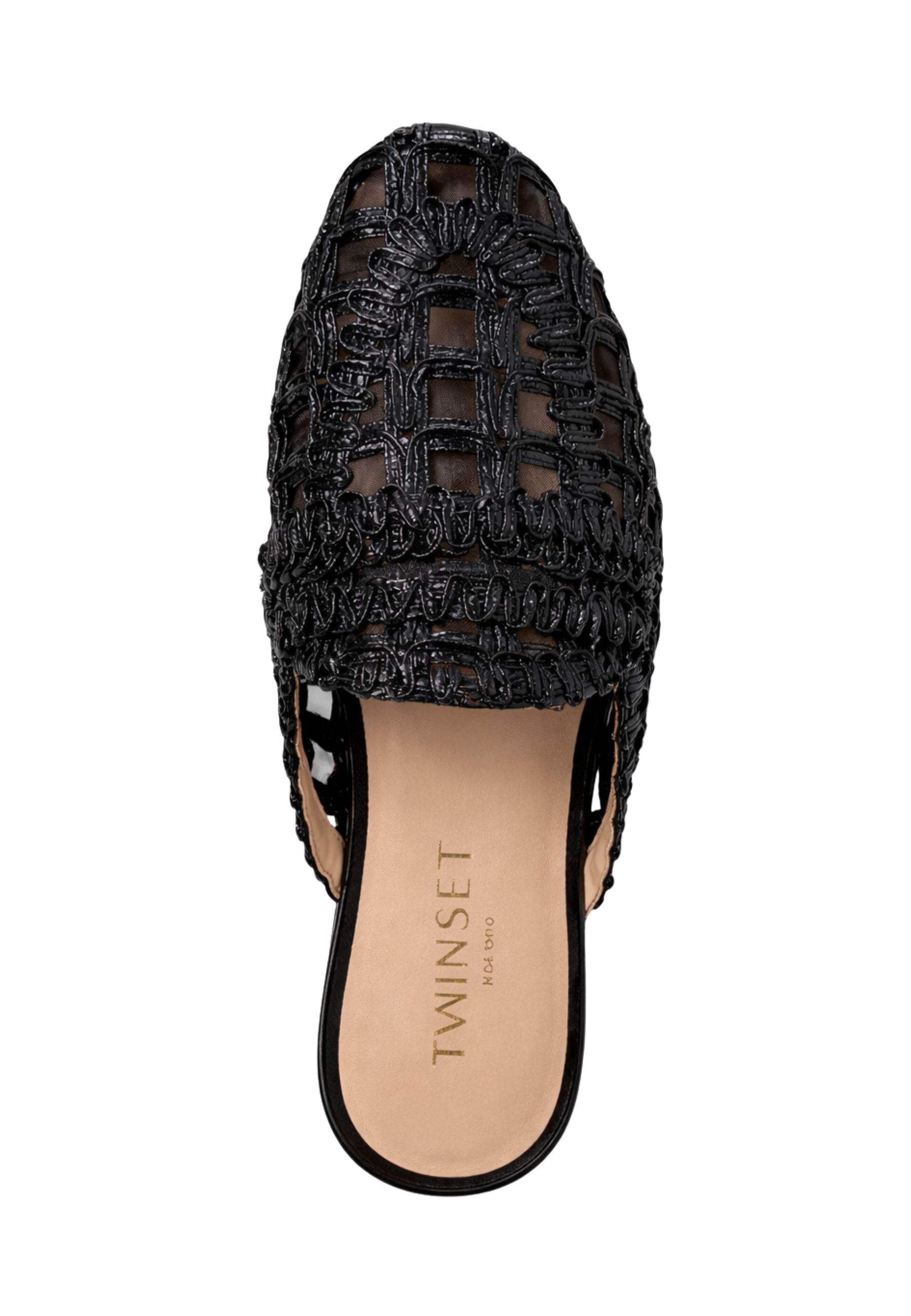 ~Sabot dal design contemporaneo e raffinato, caratterizzato da una lavorazione intrecciata che crea un elegante effetto grafico sulla tomaia. Il modello presenta una struttura a rete con dettagli ondulati che valorizzano la silhouette della calzatura, offrendo un look ricercato e distintivo. La linea slip-on con tallone aperto garantisce praticità e comfort, rendendo questo sabot ideale per completare outfit estivi con un tocco sofisticato.