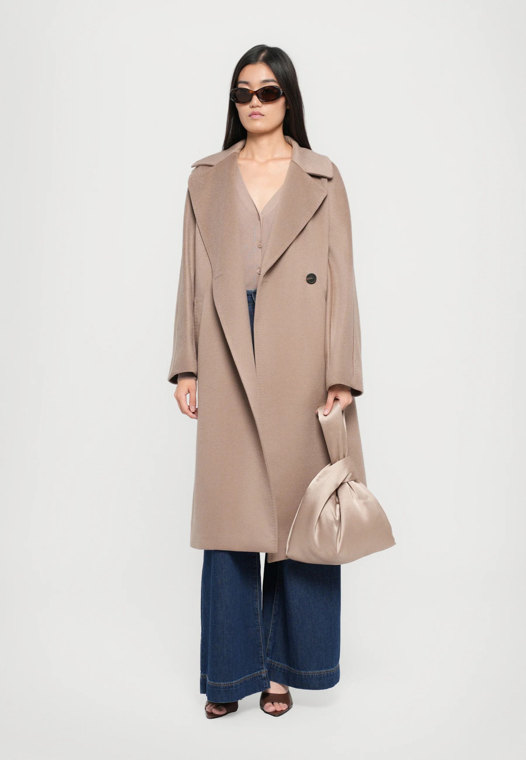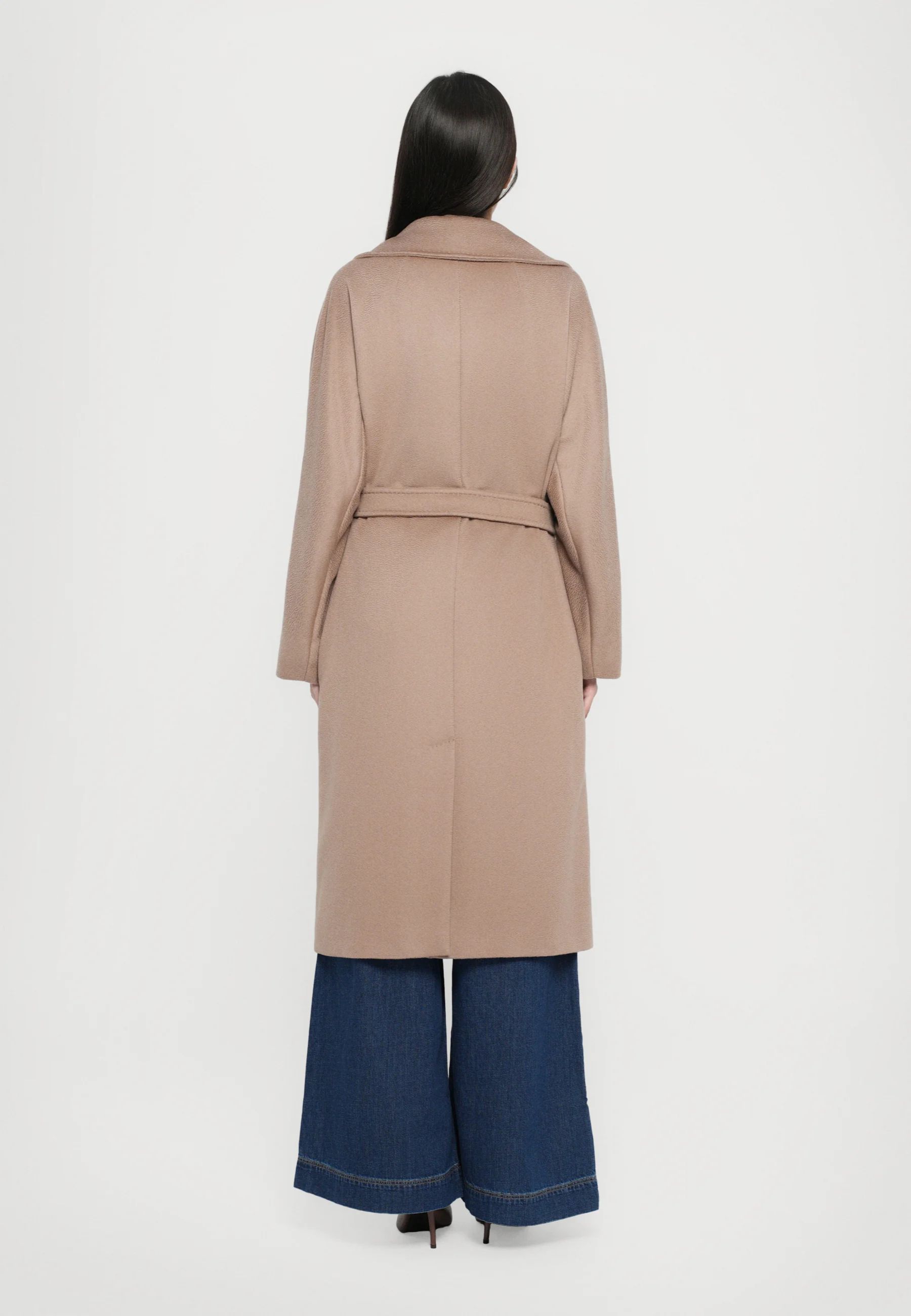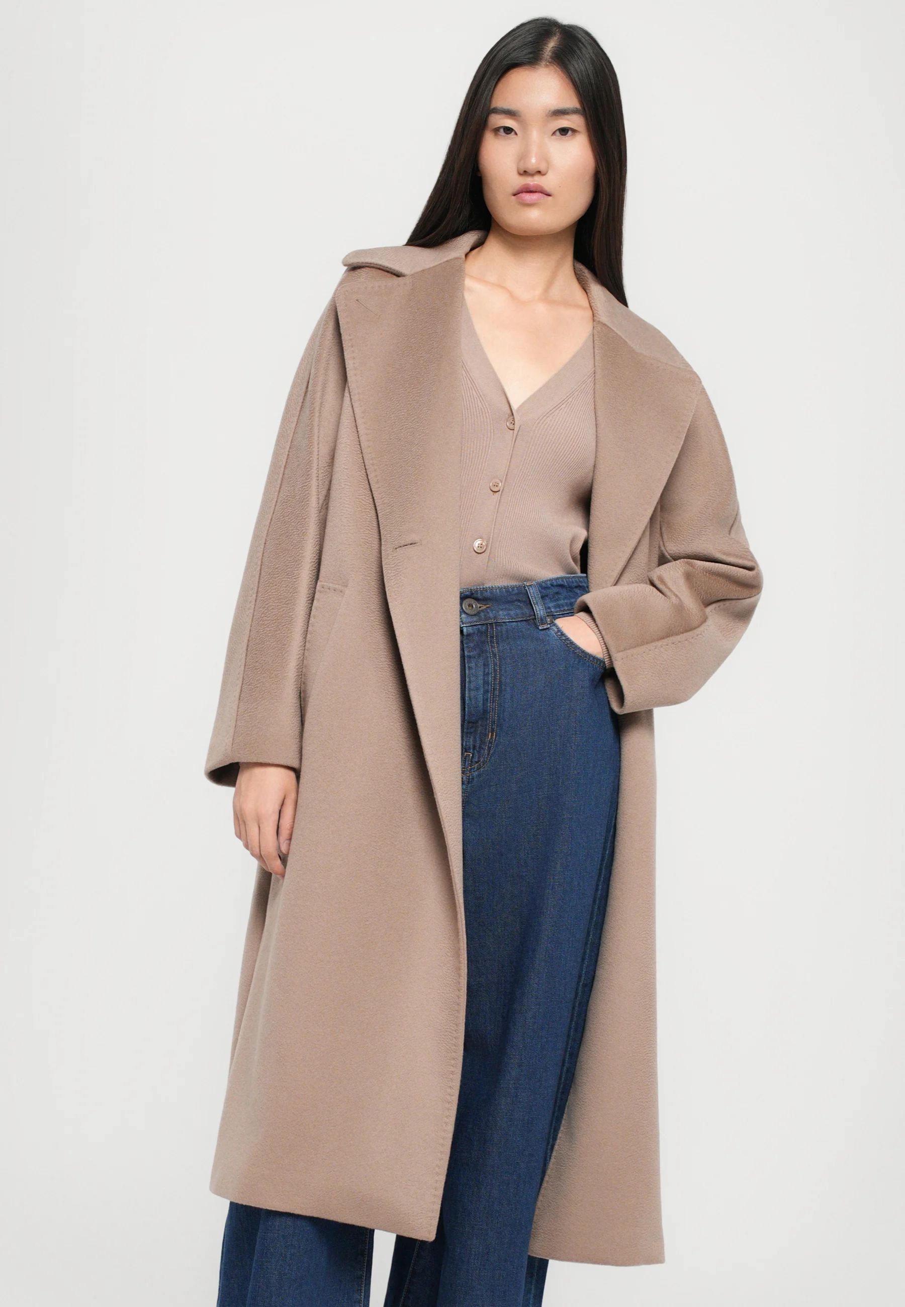 Cappotto midi sartoriale con cintura abbinata da annodare vita.