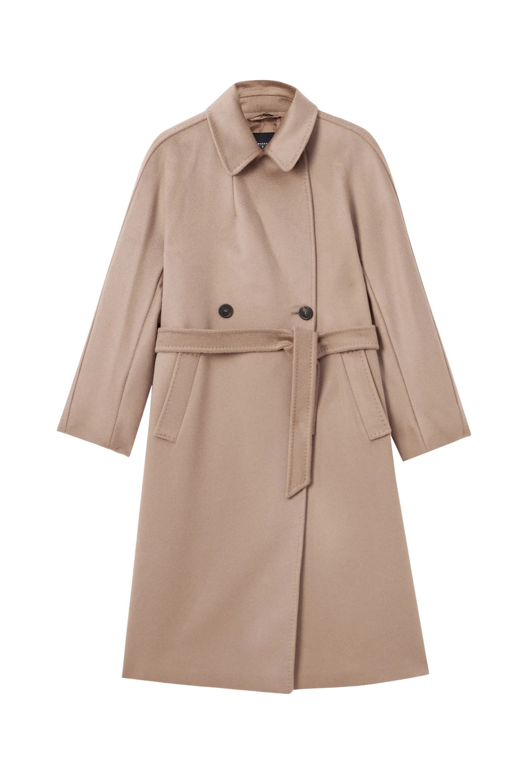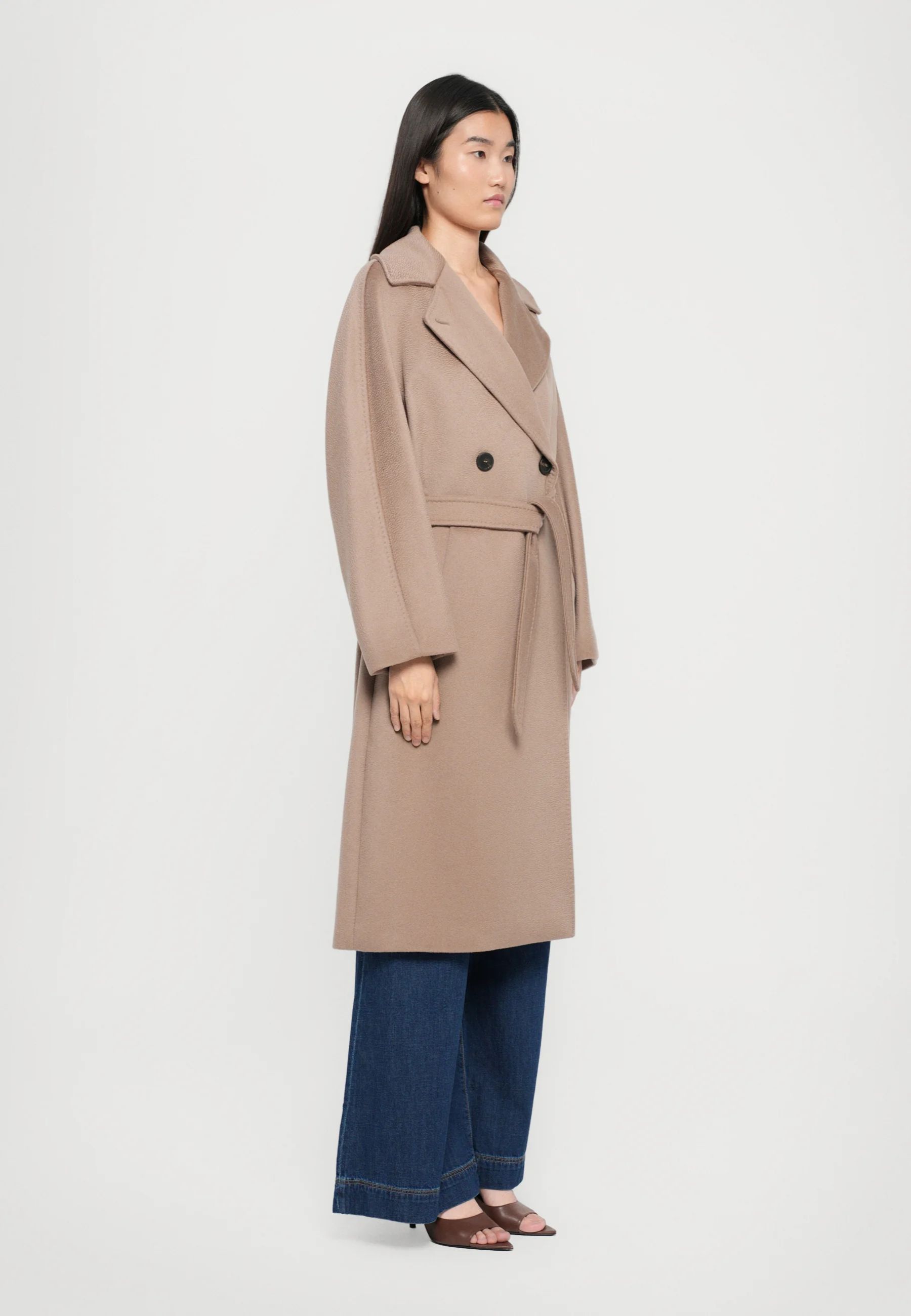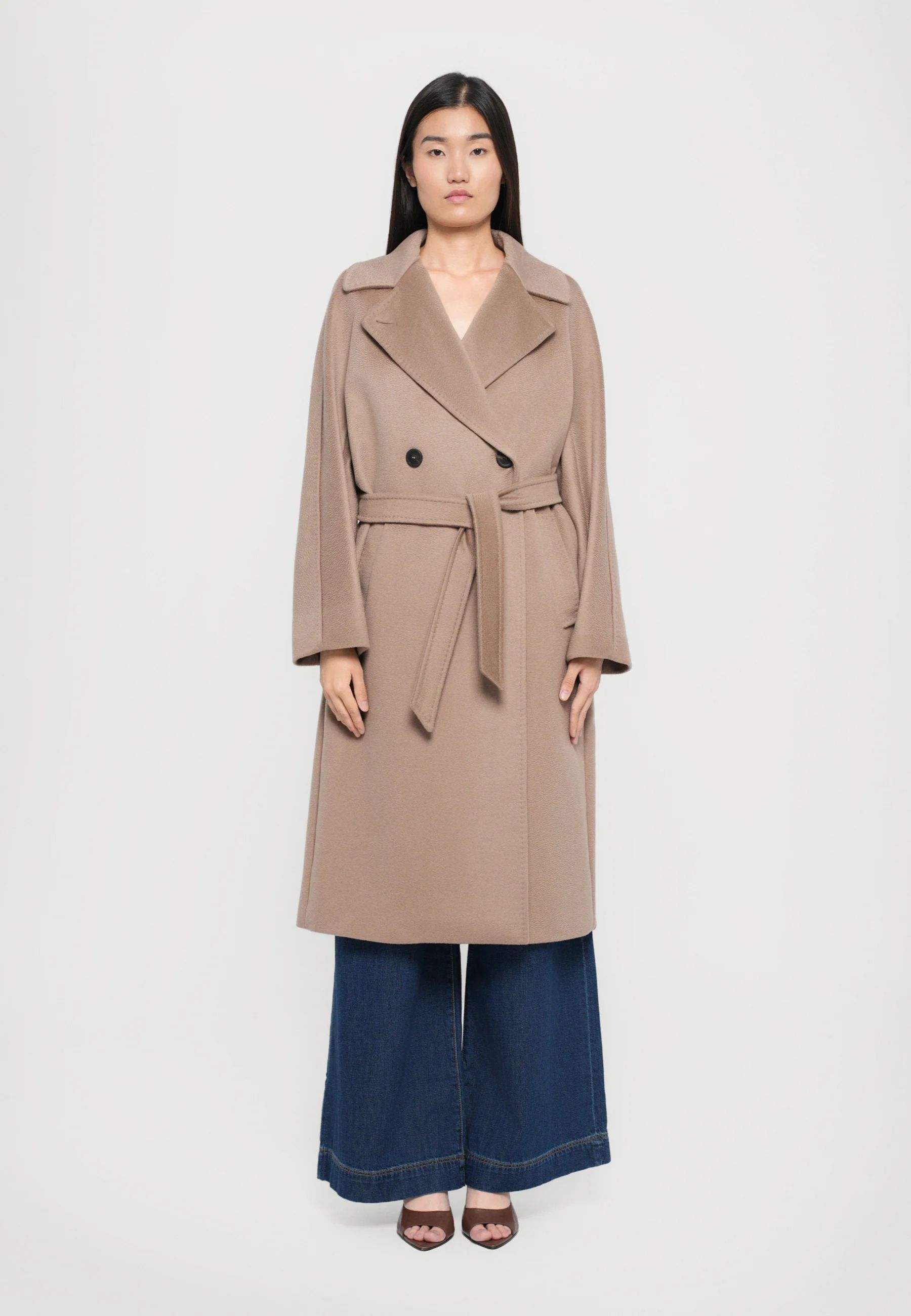 Cappotto midi sartoriale con cintura abbinata da annodare vita.