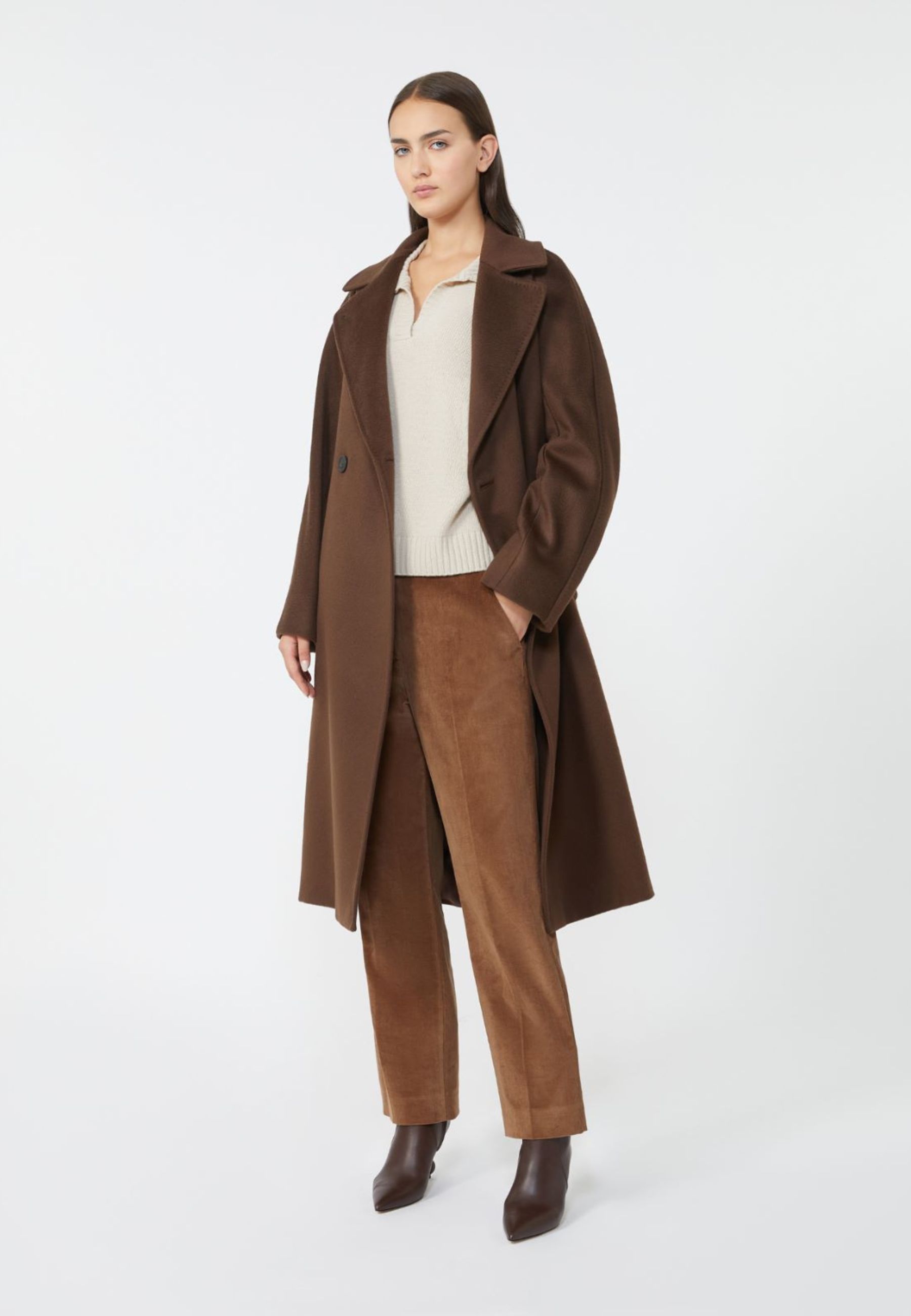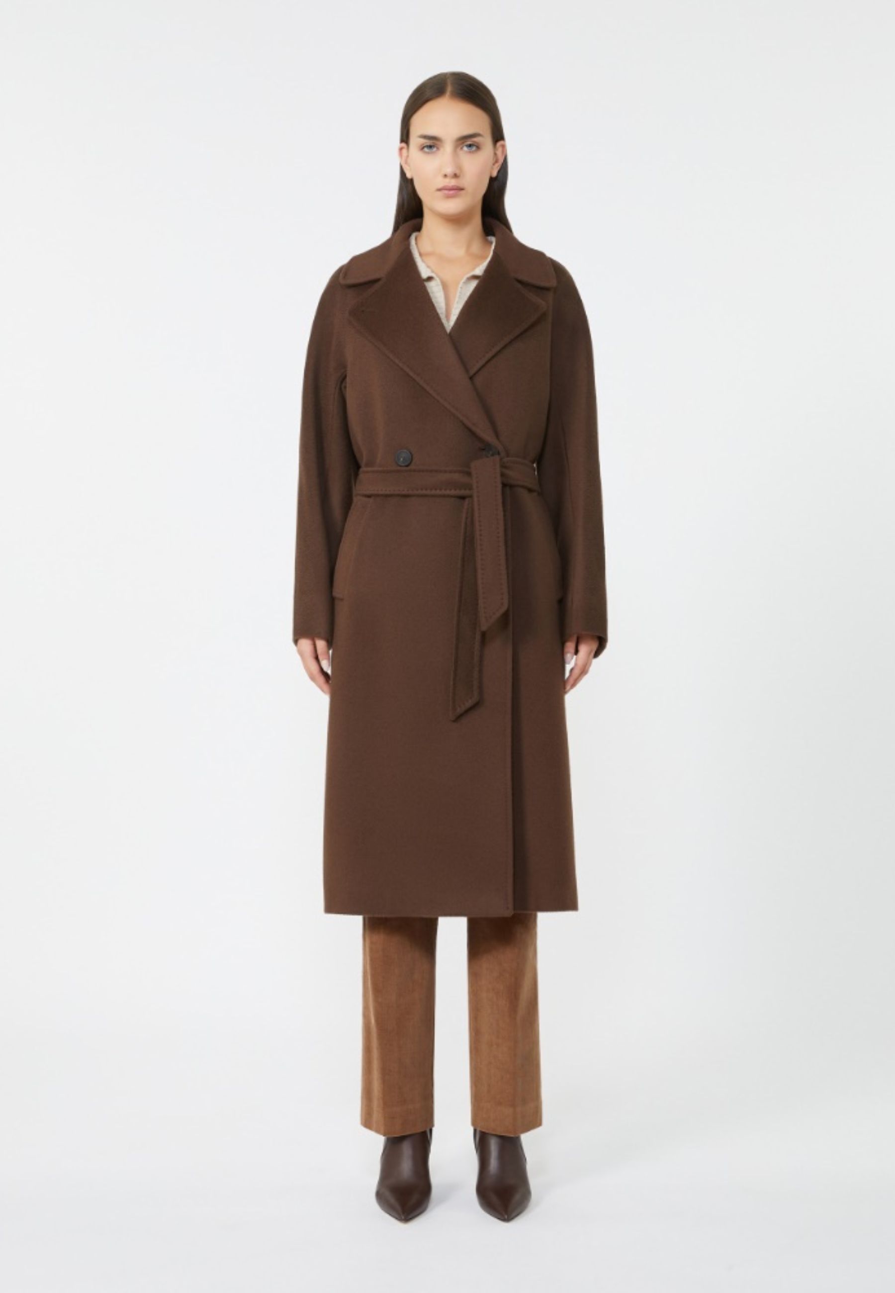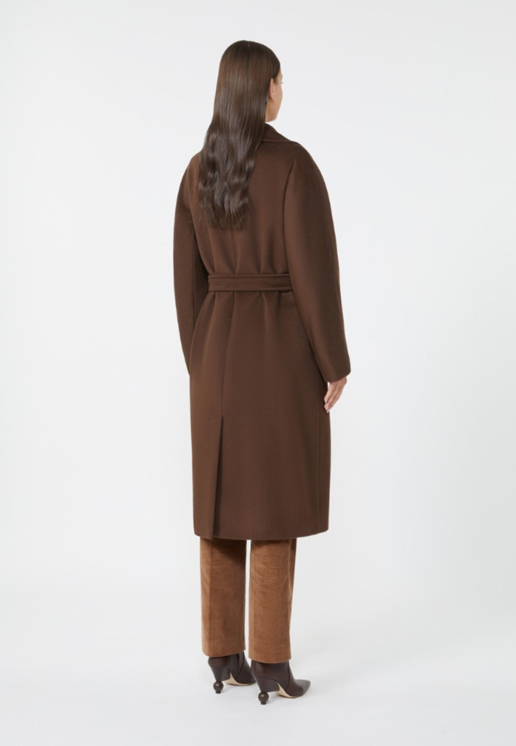 Cappotto midi sartoriale con cintura abbinata da annodare vita.