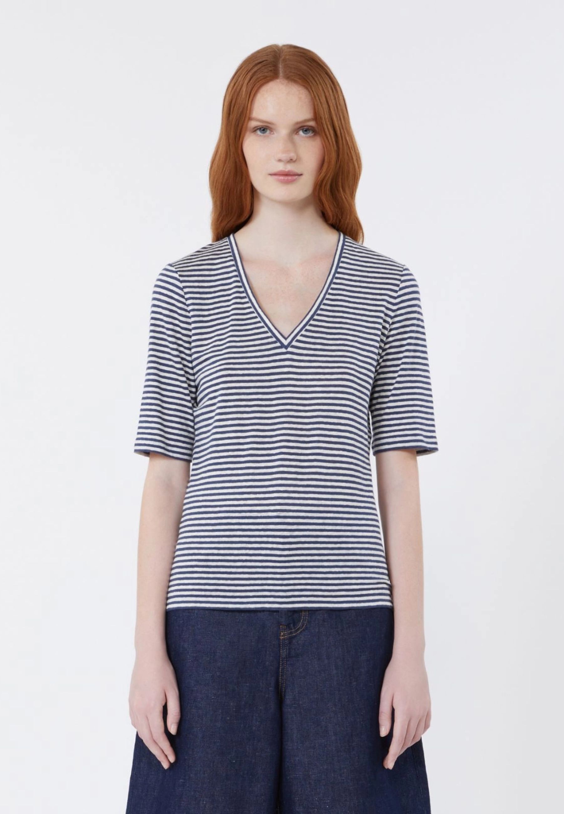- T-shirt in jersey di lino stretch