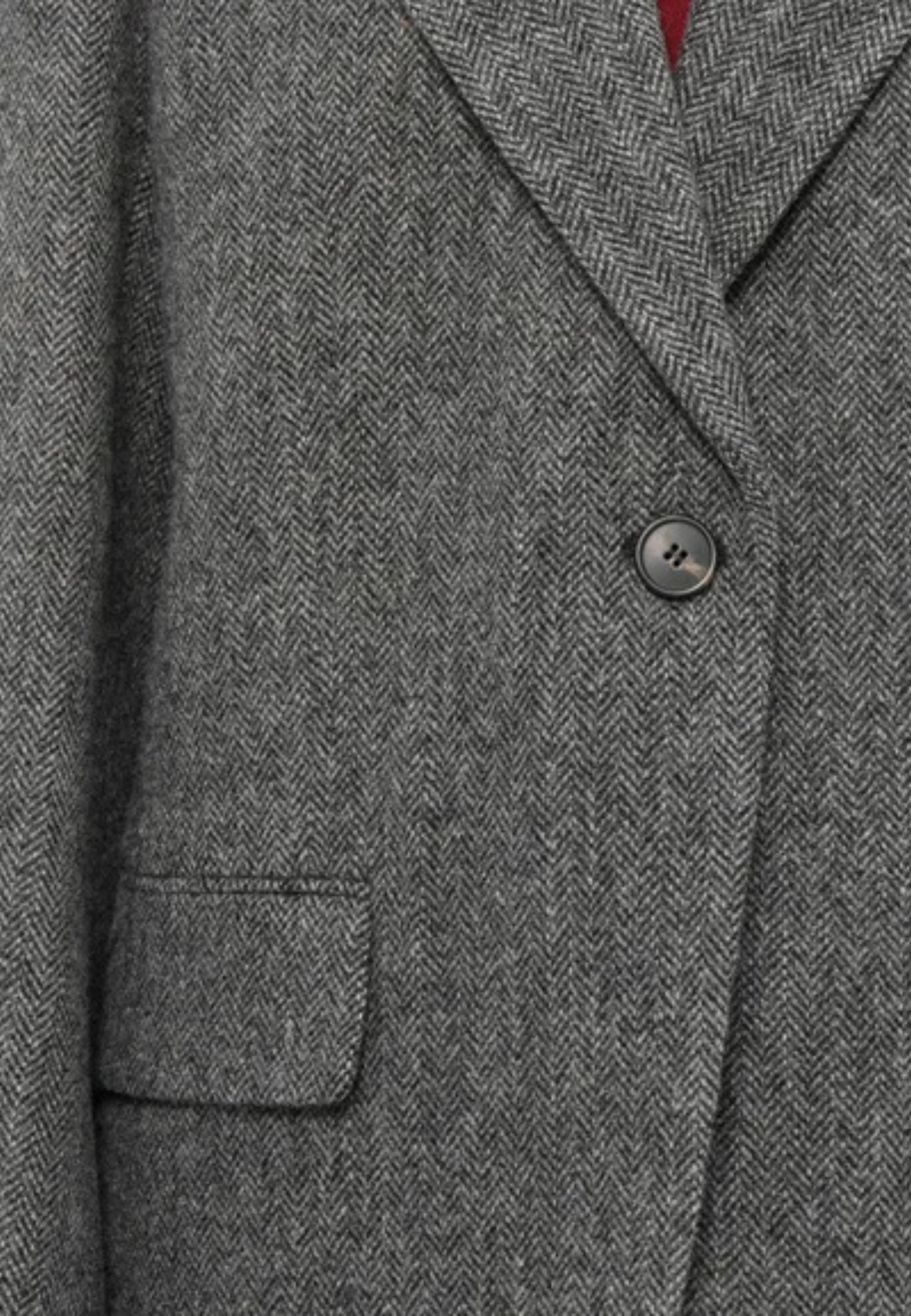 Blazer da donna Weekend Max Mara modello TRONTO, realizzato in pura lana 100% con elegante lavorazione a lisca di pesce nella tonalità grigio scuro. Un capo sartoriale dallo stile raffinato e contemporaneo, pensato per completare look formali o smart-casual con equilibrio ed eleganza.