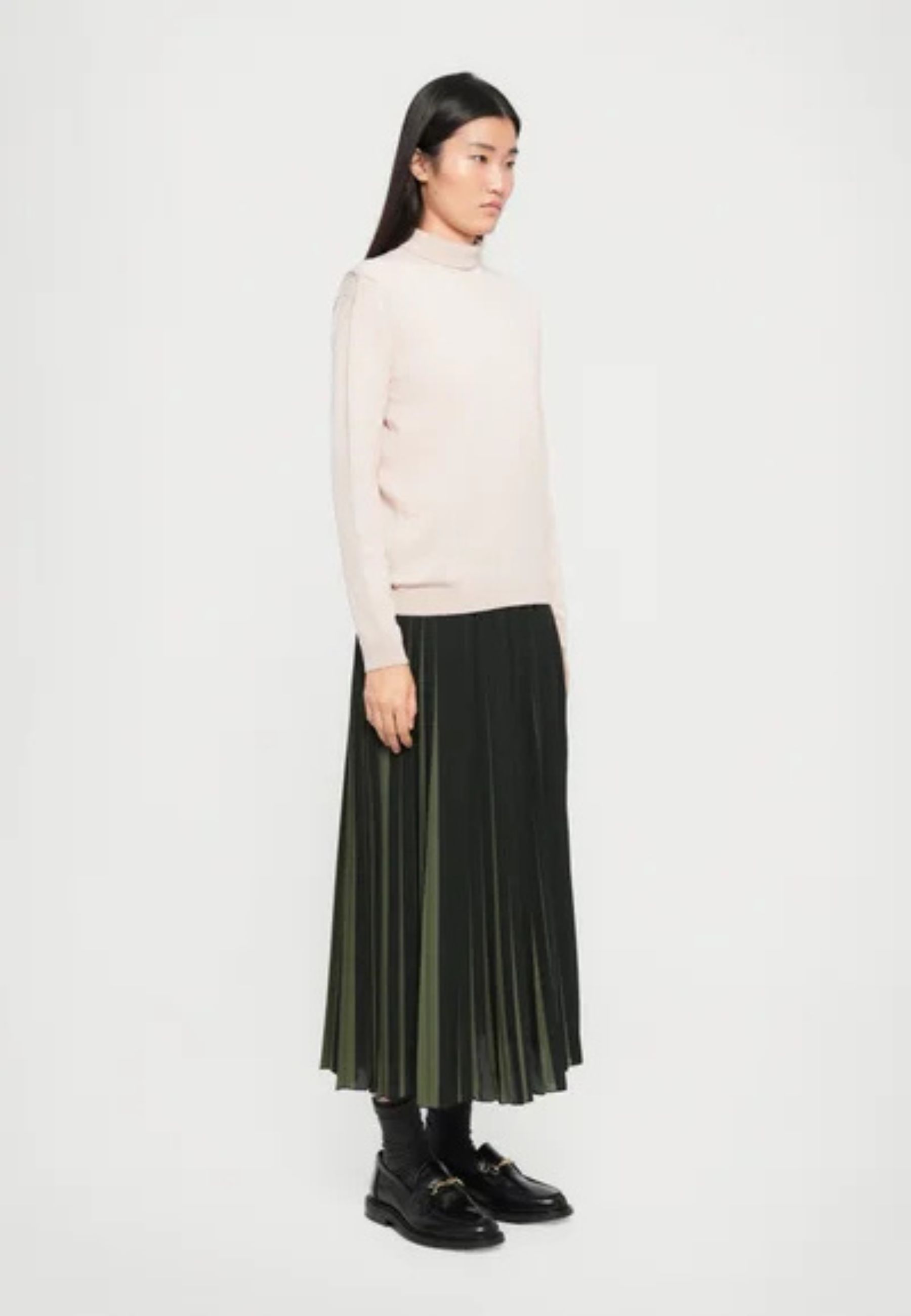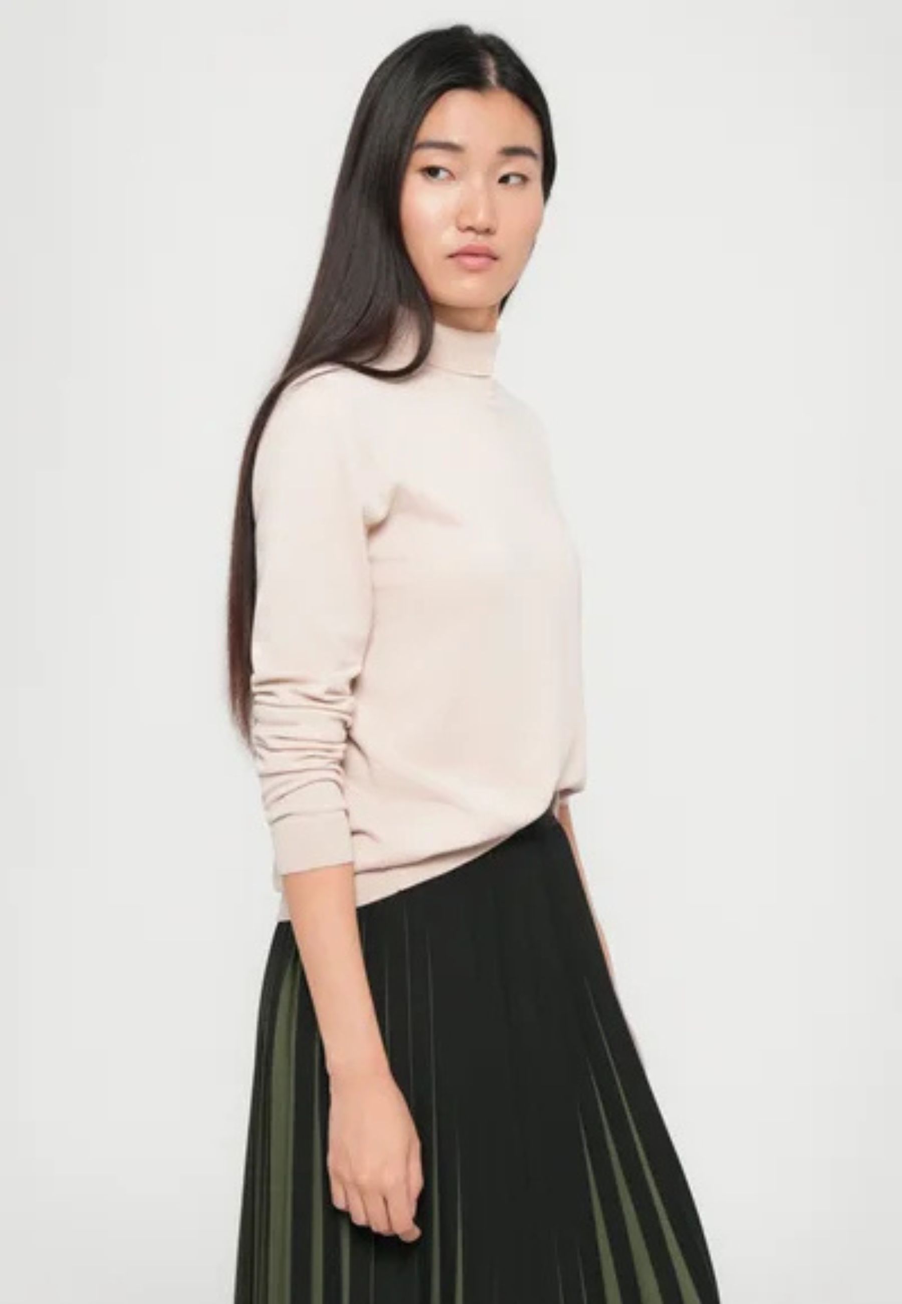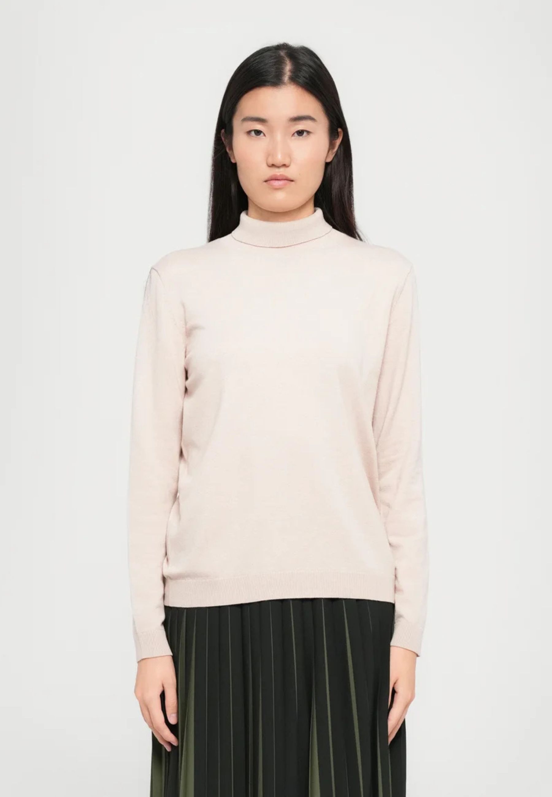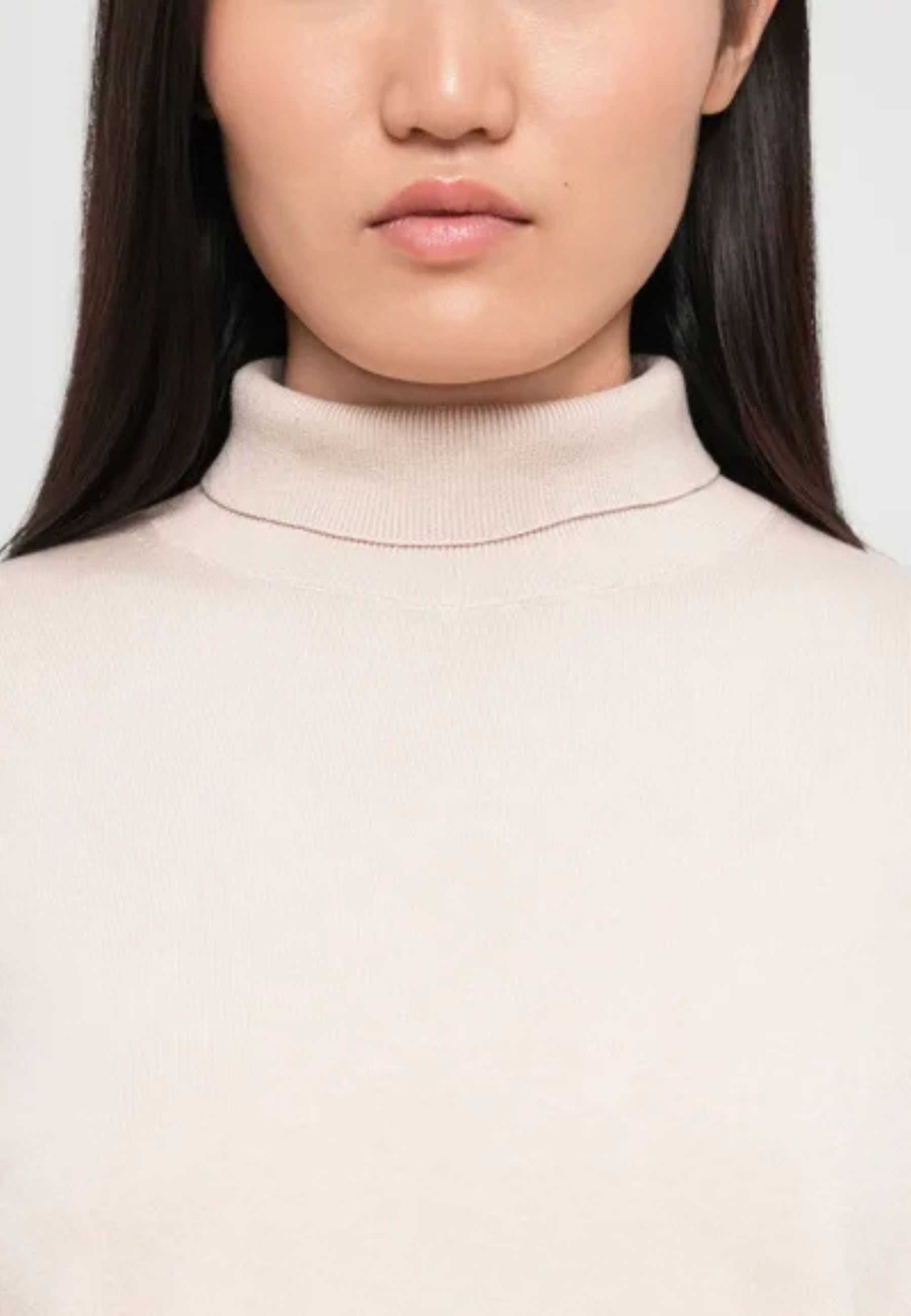 Il modello è caratterizzato da collo alto, ideale per offrire calore e un tocco sofisticato al look. La linea pulita e minimal valorizza la qualità del filato, mentre la vestibilità morbida lo rende adatto sia a look casual chic sia ad abbinamenti più eleganti.