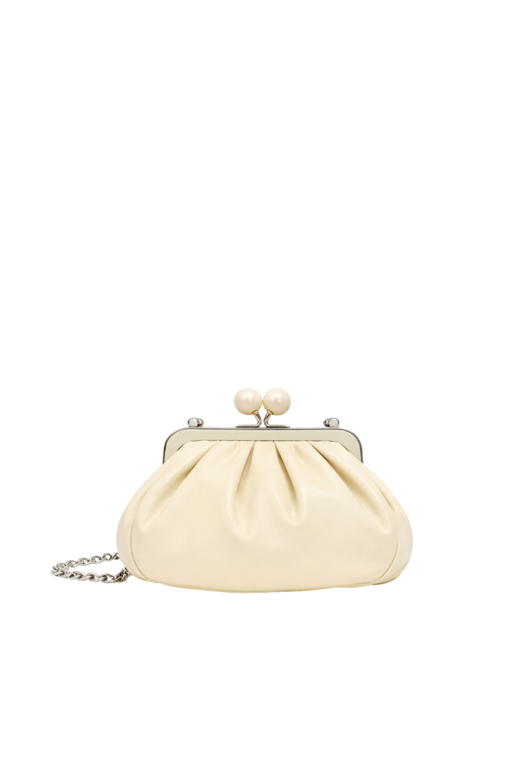 La caratteristica chiusura metallica con sfere personalizzate Weekend Max Mara rappresenta lelemento iconico della linea Pasticcino, conferendo al modello un dettaglio elegante e riconoscibile.